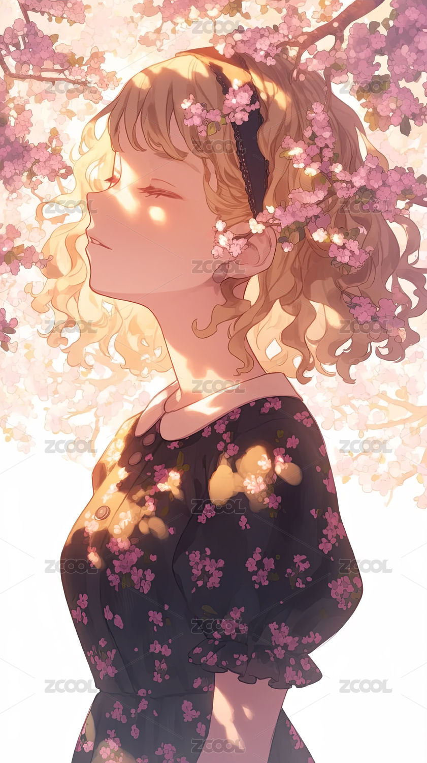樱花树下的金发少女
