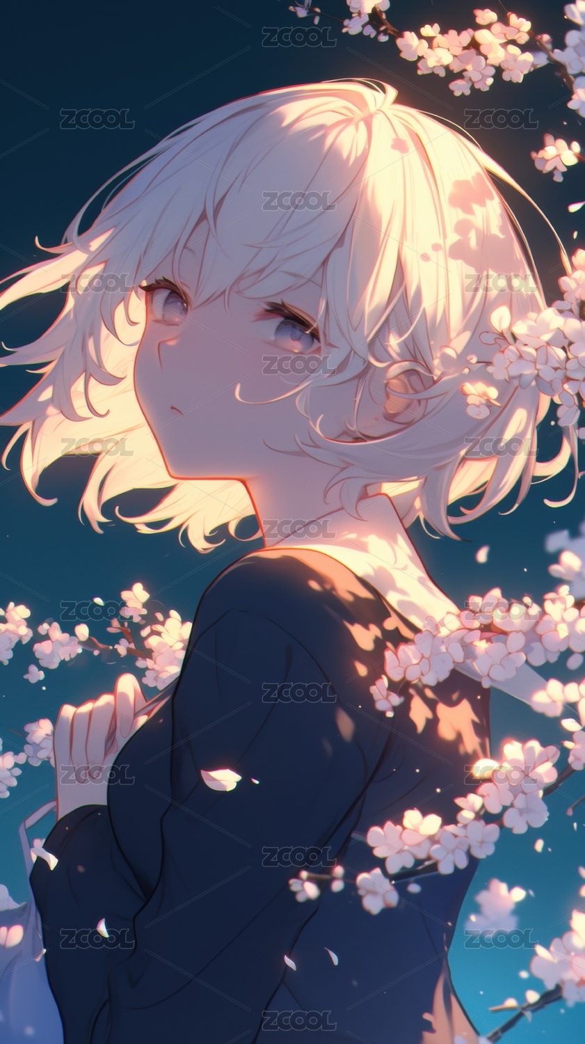 樱花树下的银发少女
