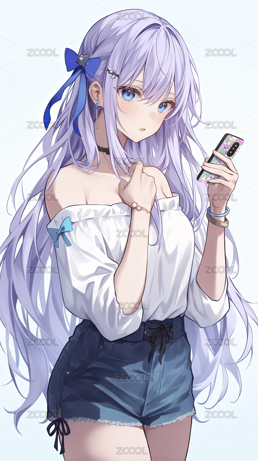 蓝发动漫女孩的休闲时光