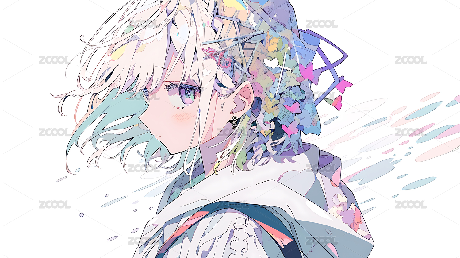 可爱的动漫女孩新海城风格唯美风格壁纸背景