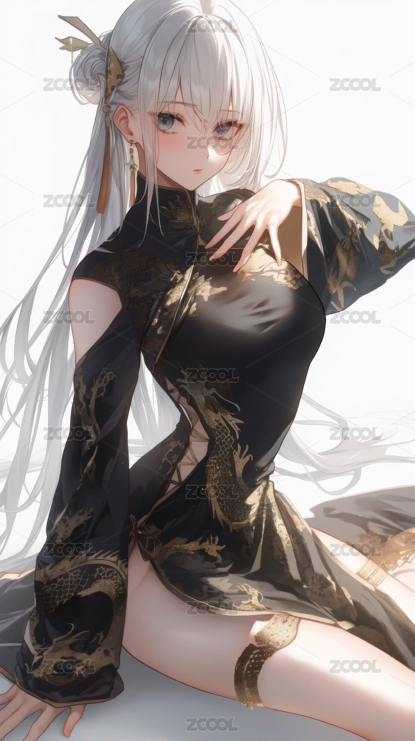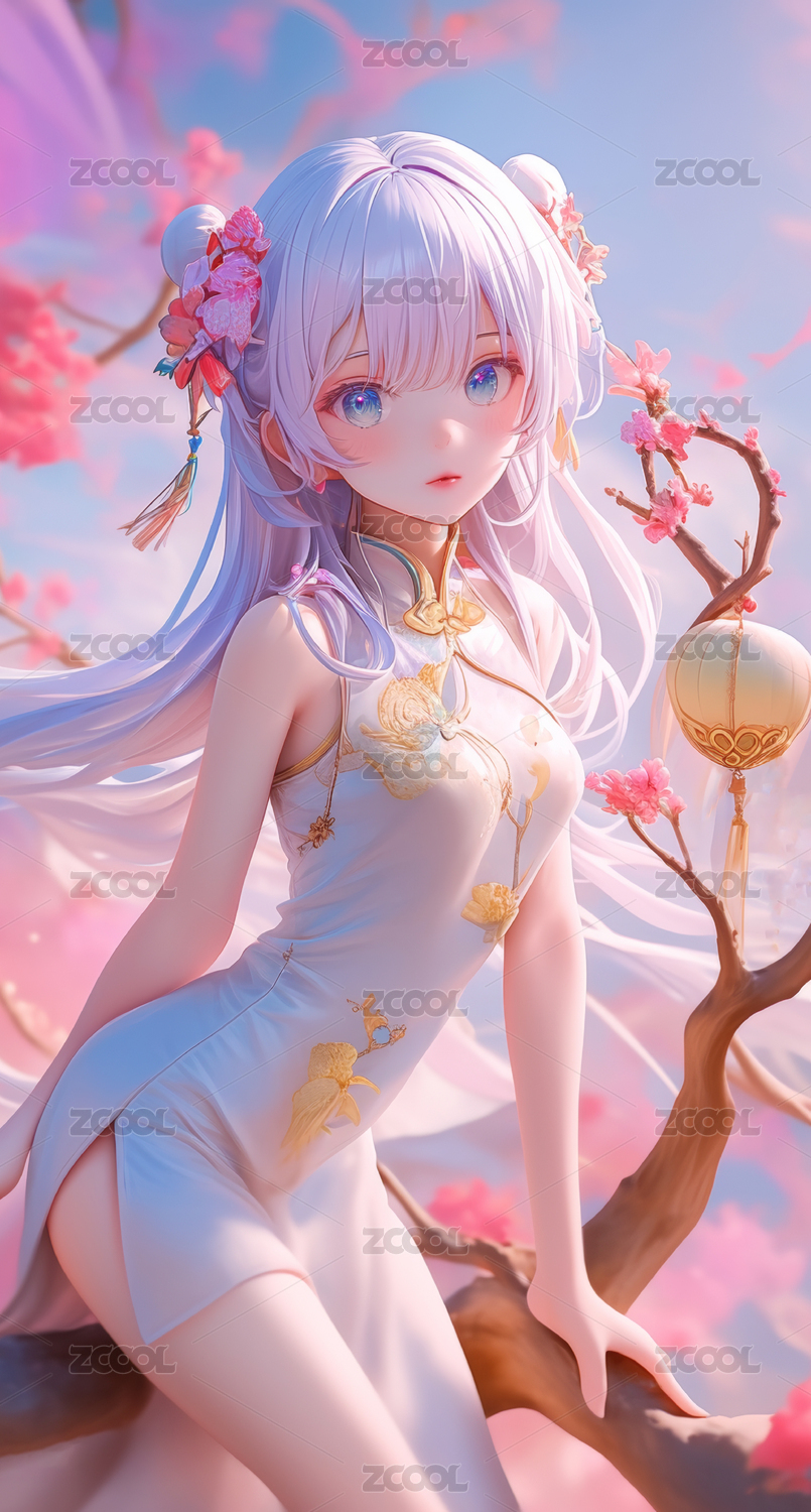 动漫,少女,旗袍,持伞,优雅,传统,夏日,清新,东方美,东方
