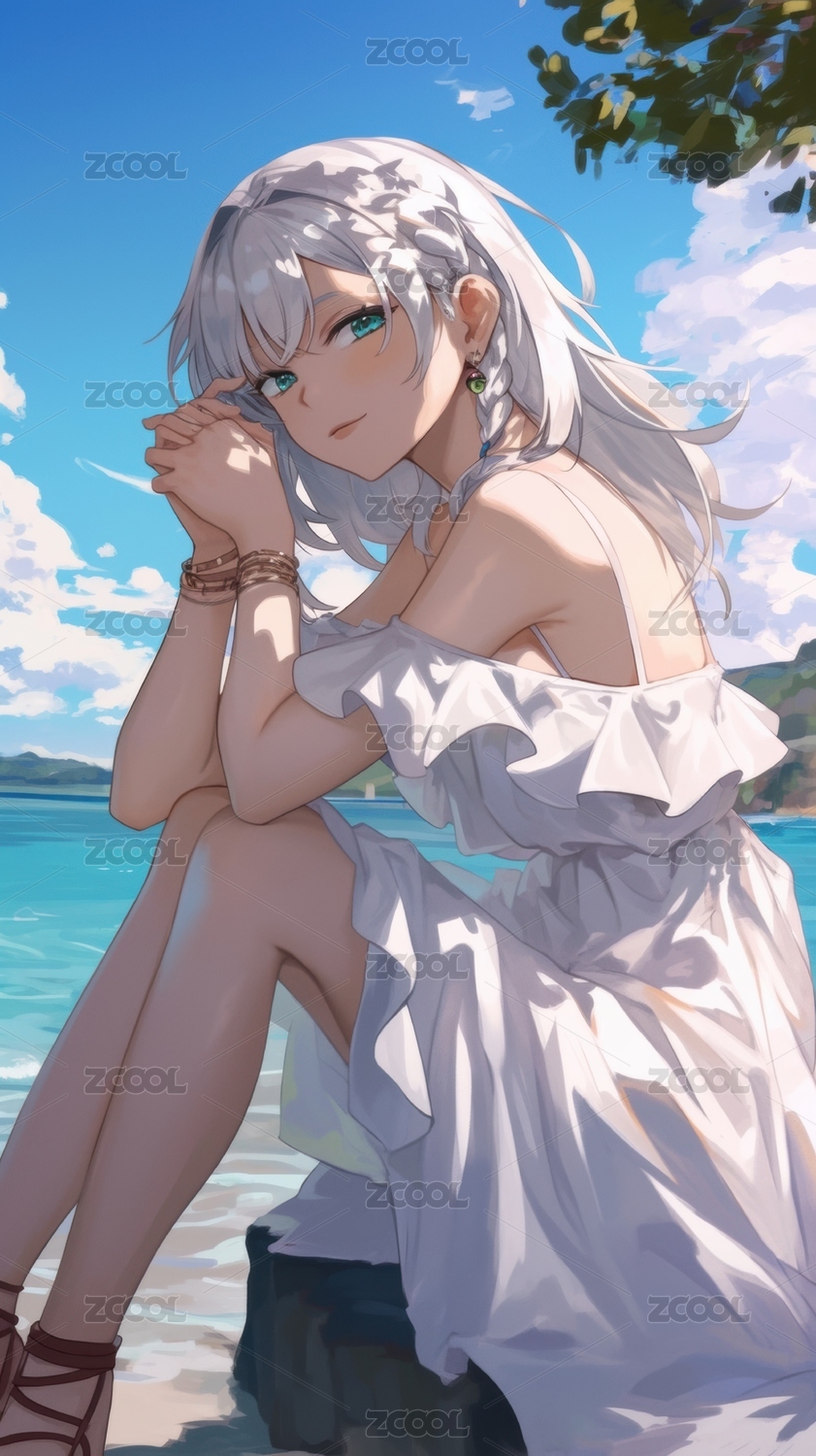 可爱的动漫女孩新海城风格唯美风格壁纸背景