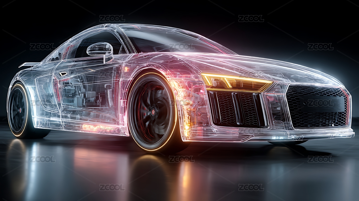 全息网格透明发光跑车模型