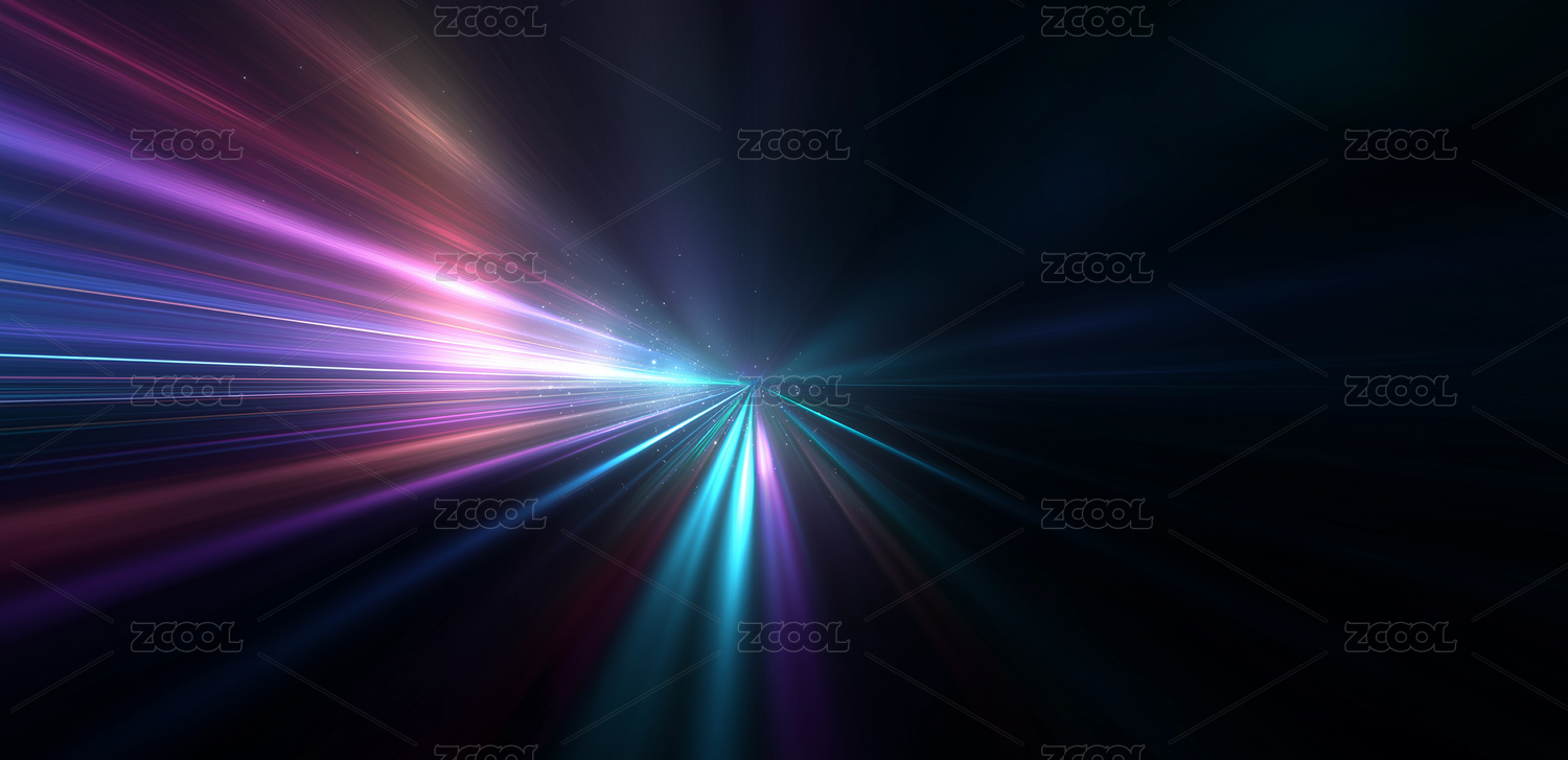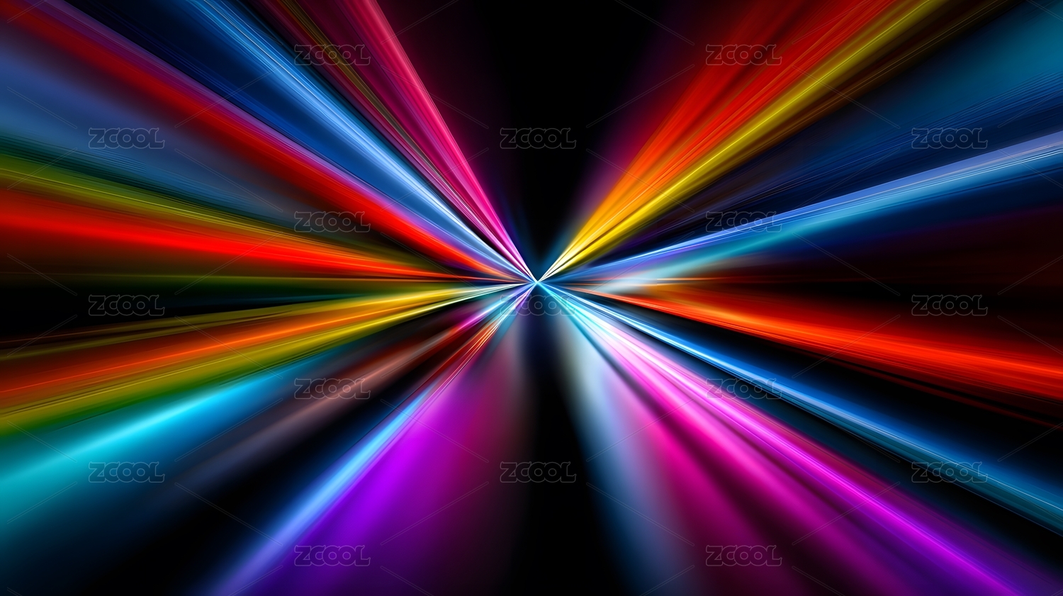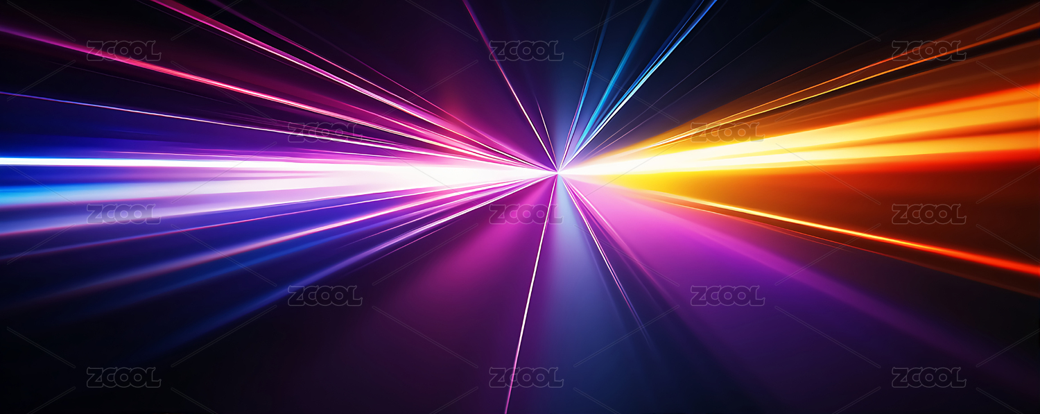 暗背景下彩色光线放射呈现科技动感的视觉效