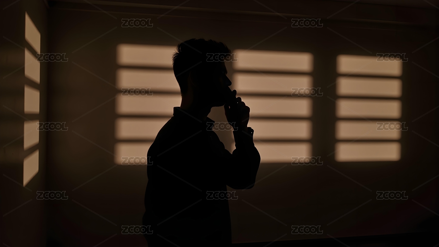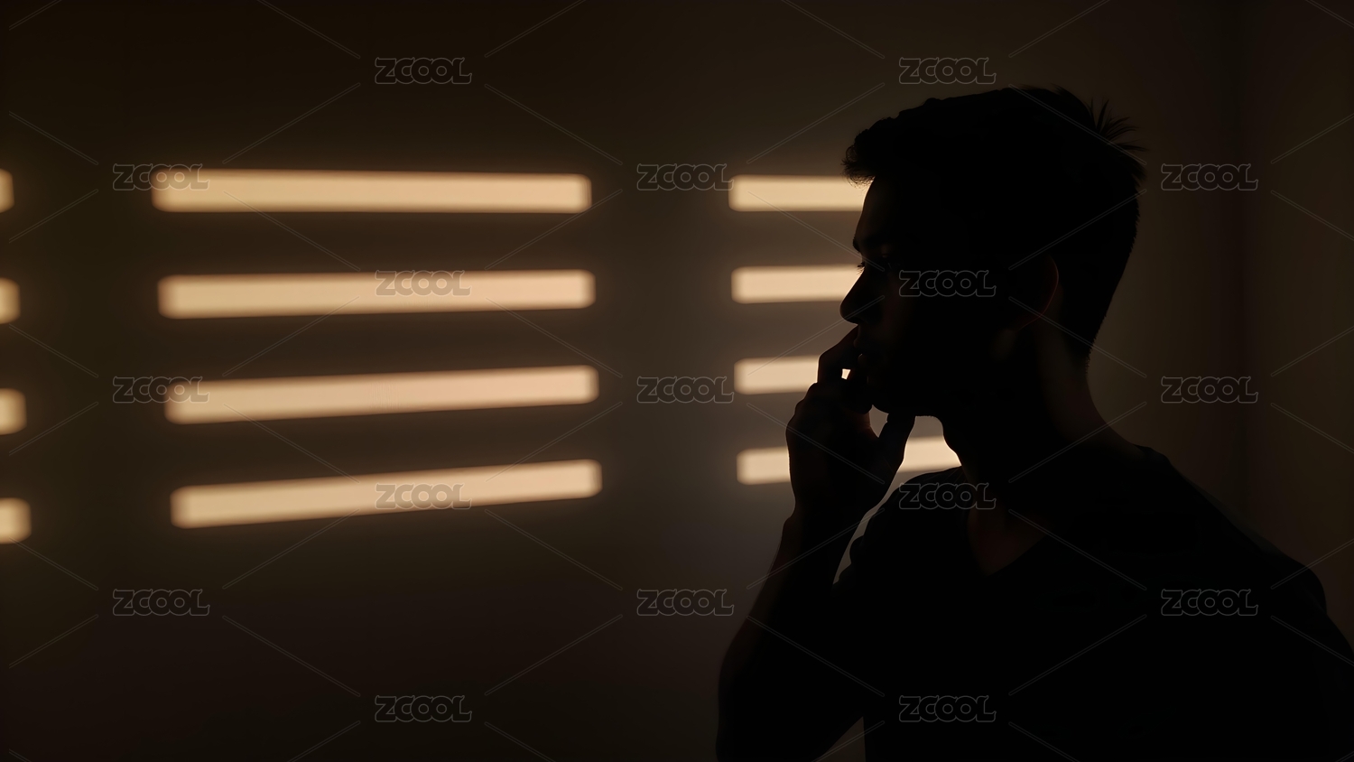 黑暗,室内,阴影,窗户,百叶窗,女性,夜晚,电话,倾诉,沟通