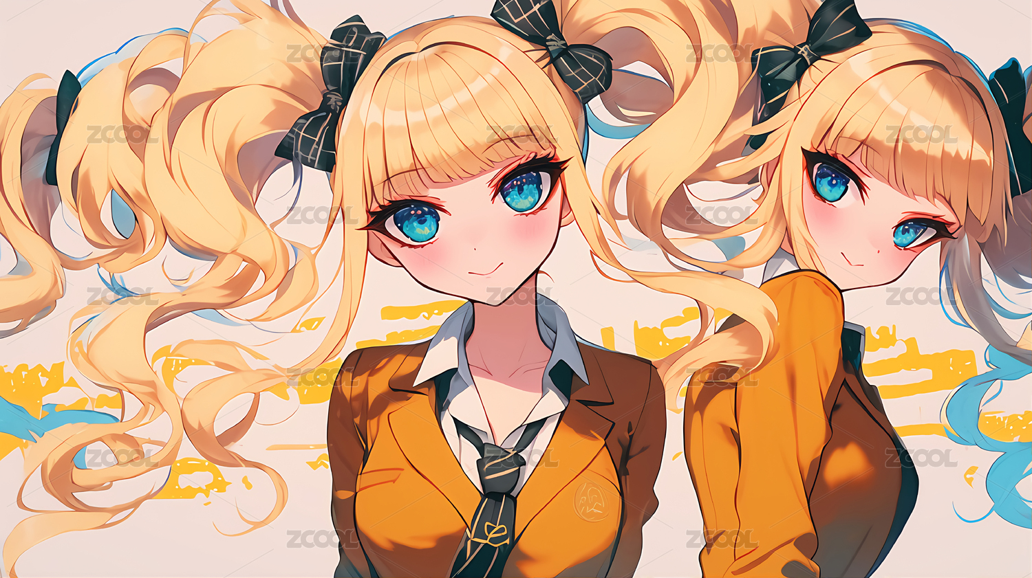 插画,漫画,动漫,日漫,少女,金发,温柔,动漫风格,双马尾,注视