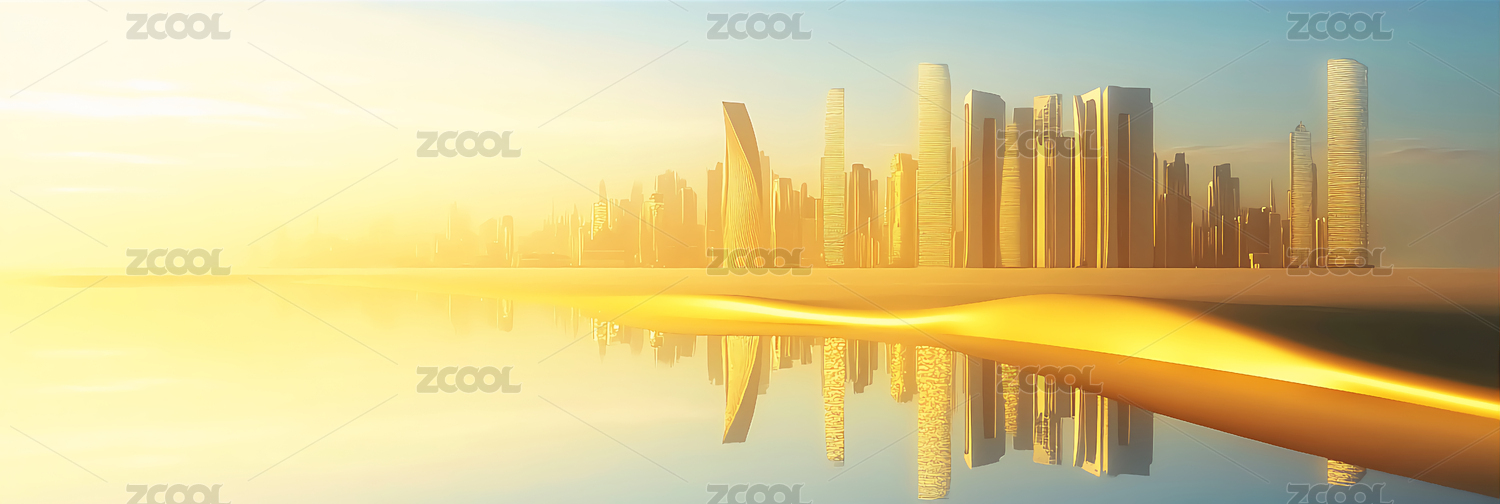 奢华金色摩天大楼天际线