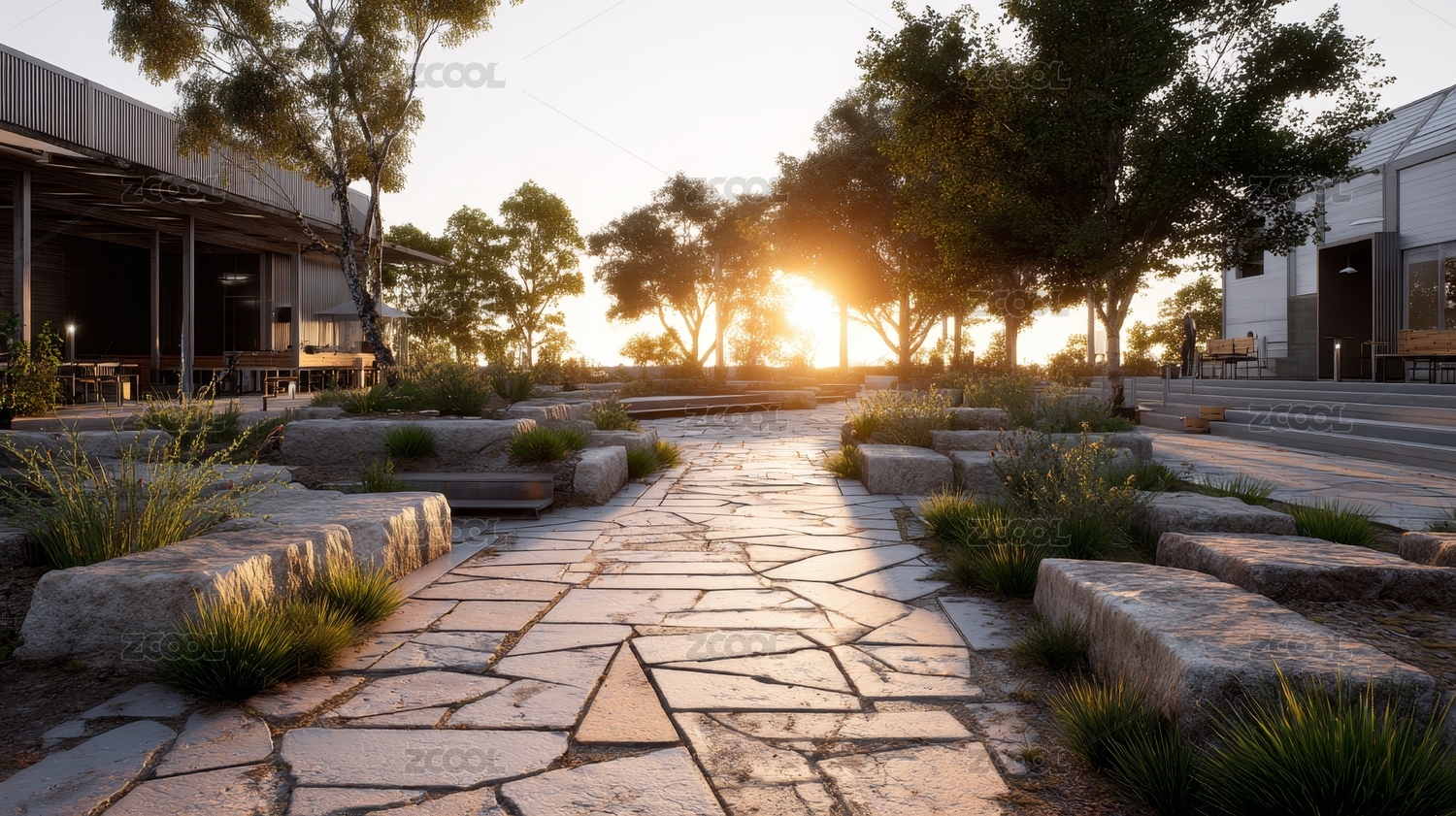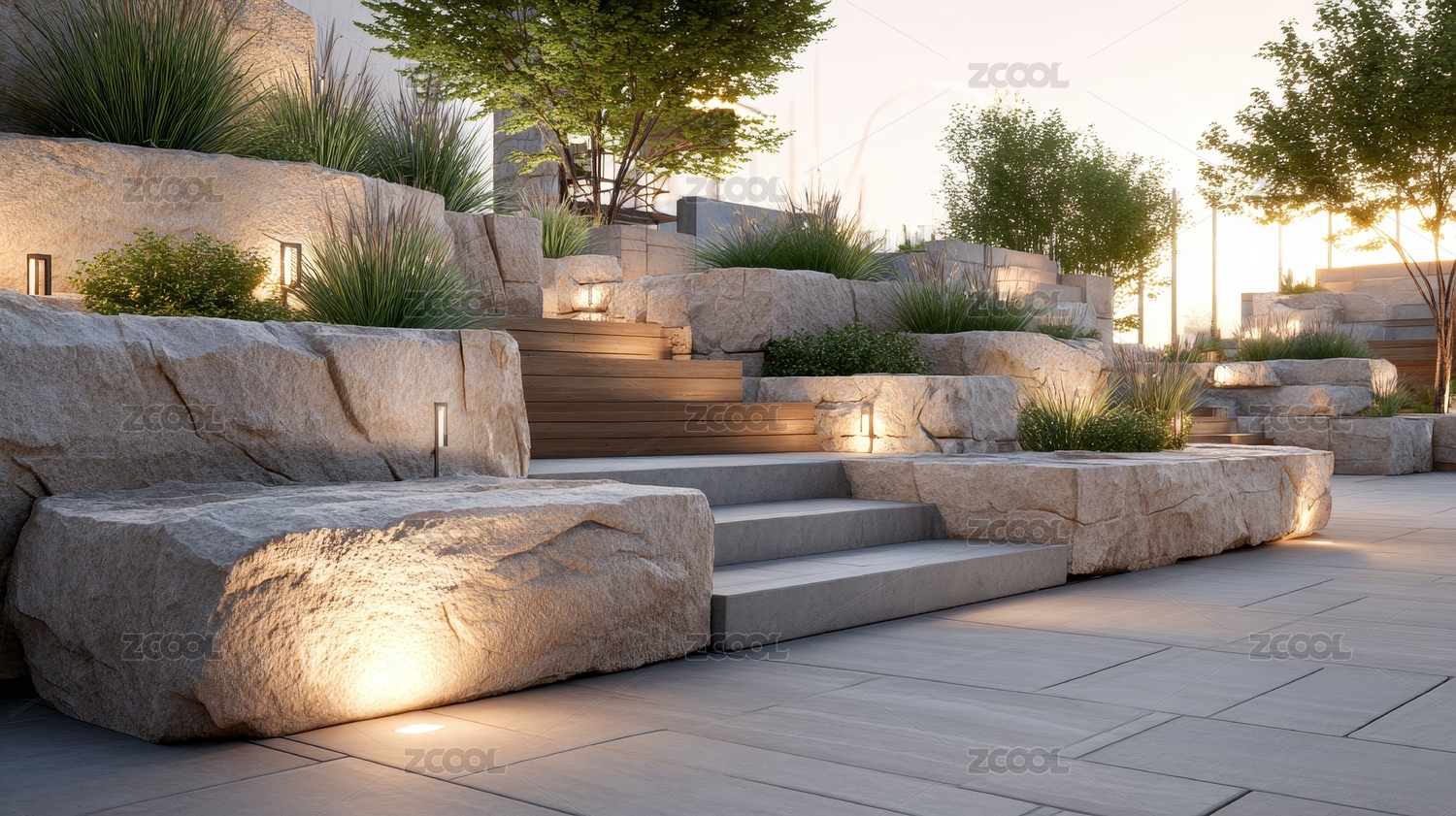 户外,现代,花园,石头,景观,自然,宁静,绿植,放松,平静