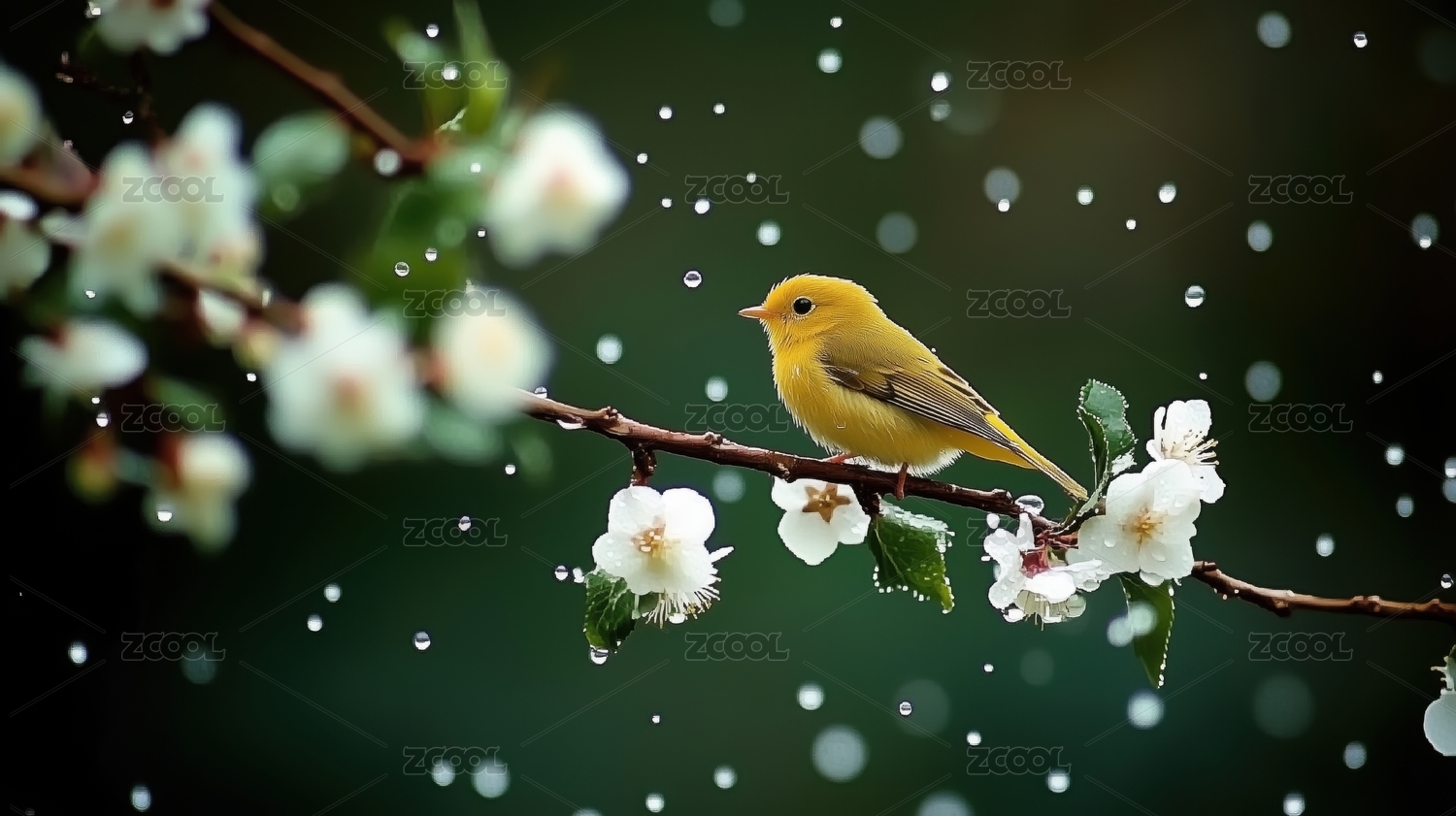 枝头,鸟憩,绿意,显生机,小鸟,栖息,绿色,植物,背景,自然