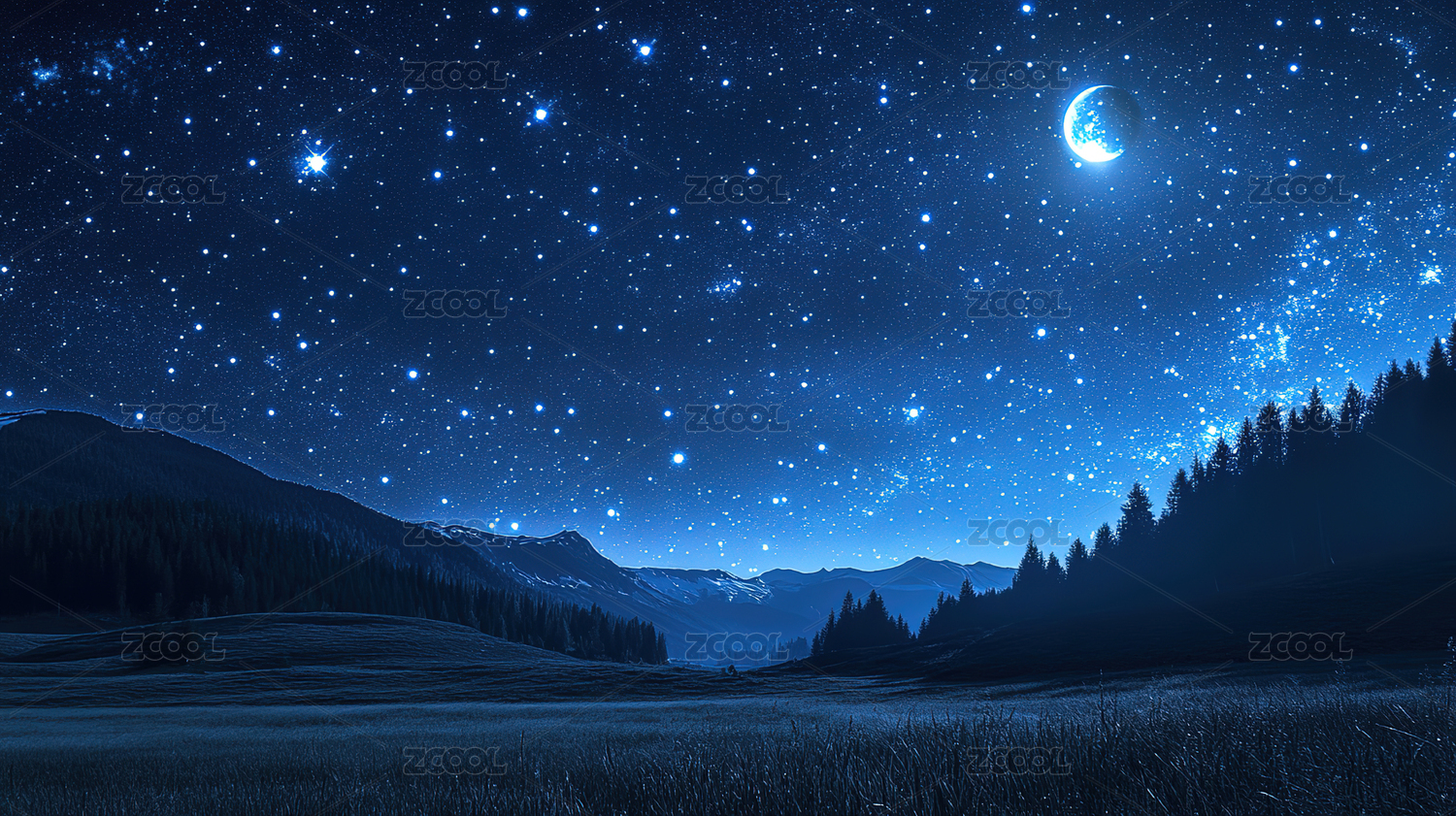 自然,户外,平静,宁静,寒冷,闪烁,树木,风景,静谧,月夜