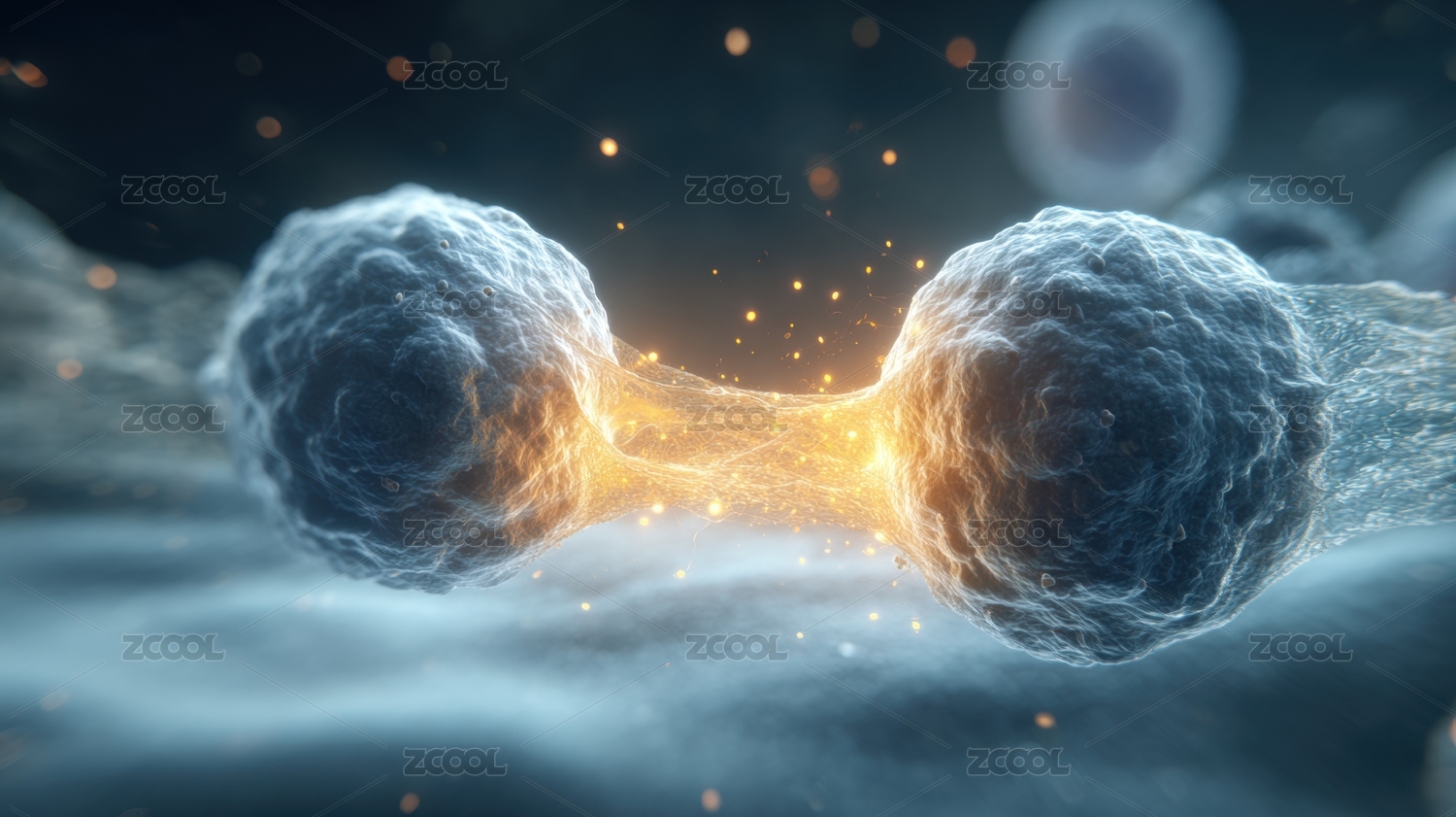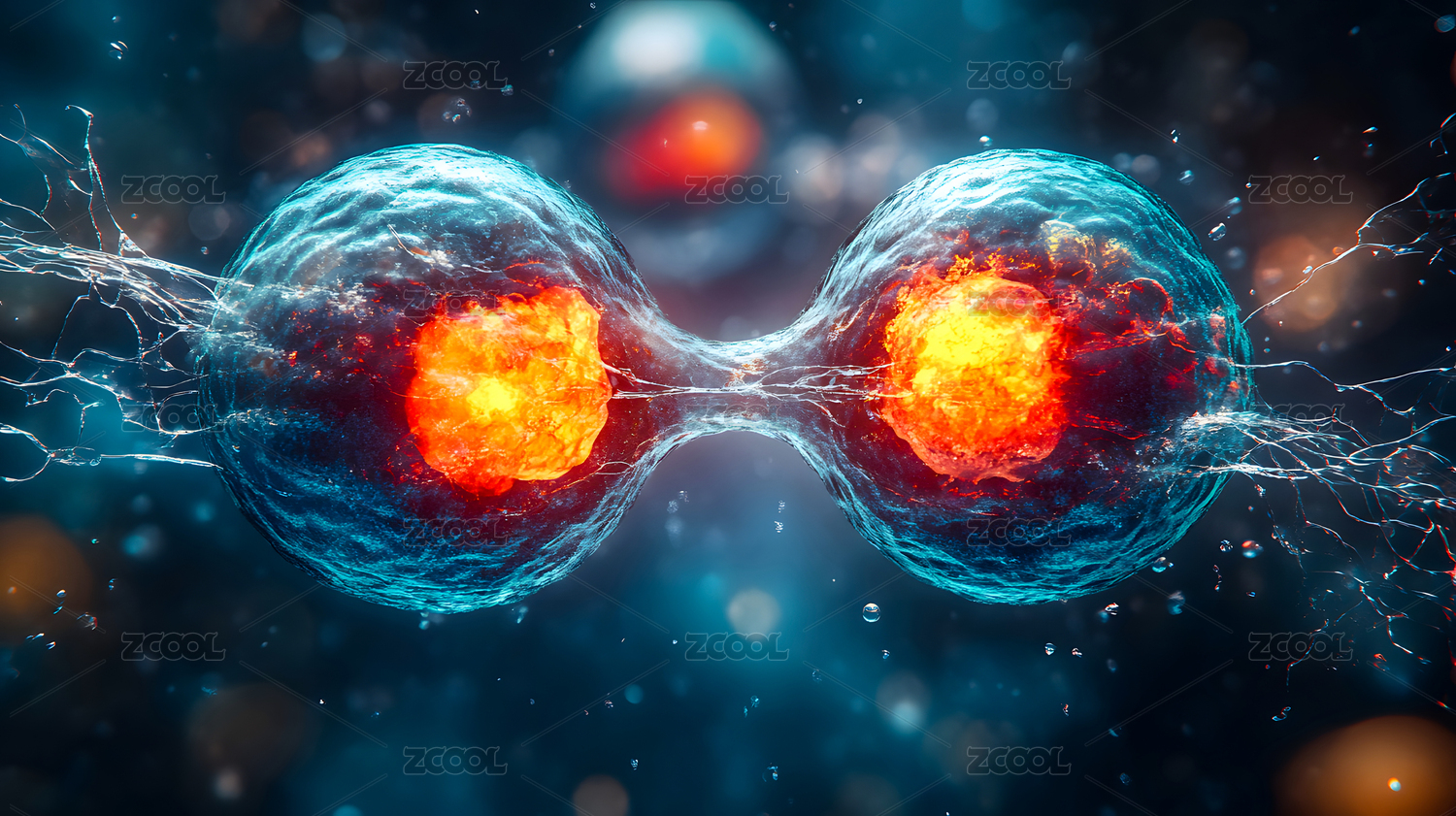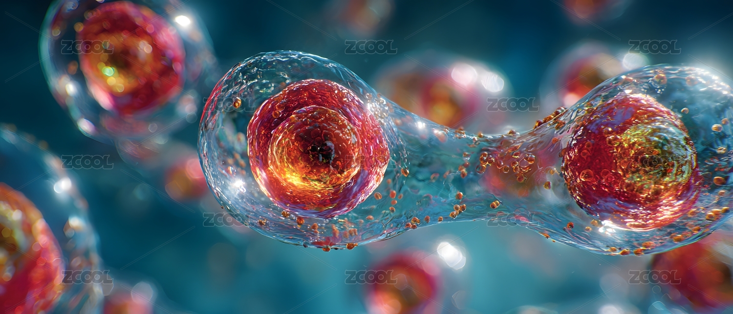 细胞分裂微观世界 蓝色背景下生命律动