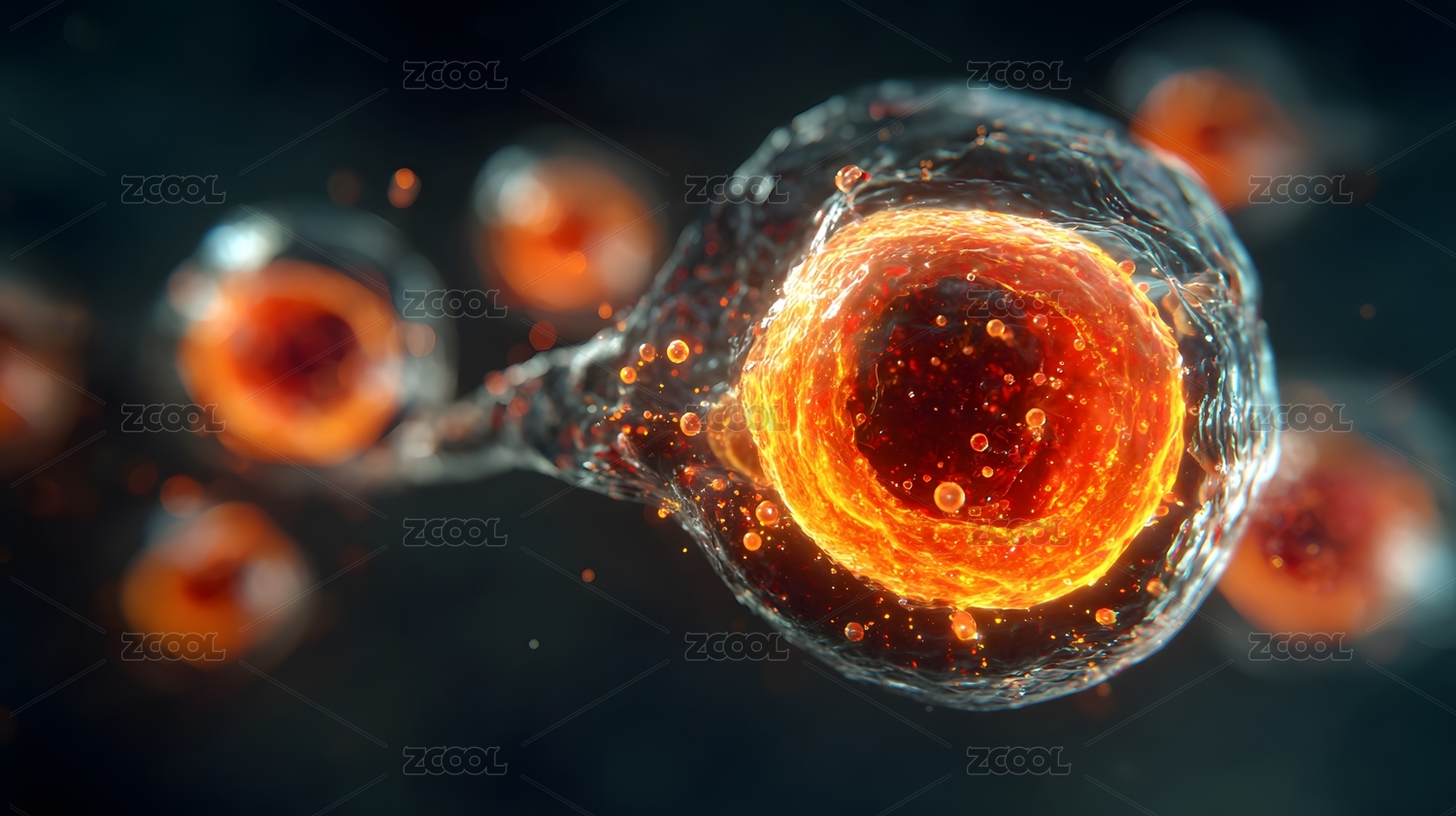 细胞内部发光生命体 抽象深邃氛围