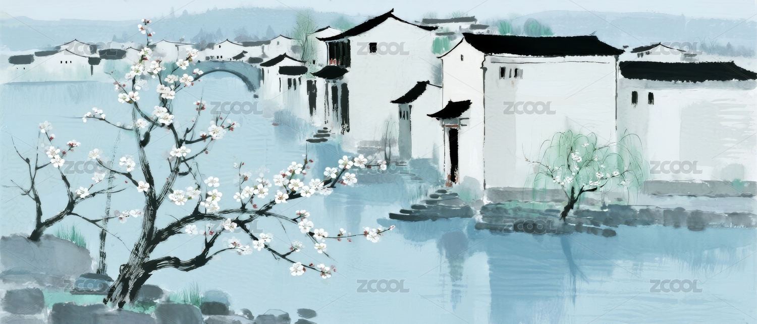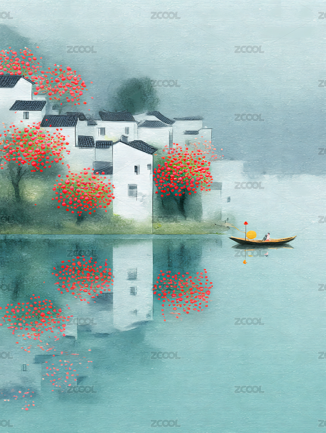 桃红,柳绿,江南,水乡,绿色,张大千,风格,南方,春天,夏天