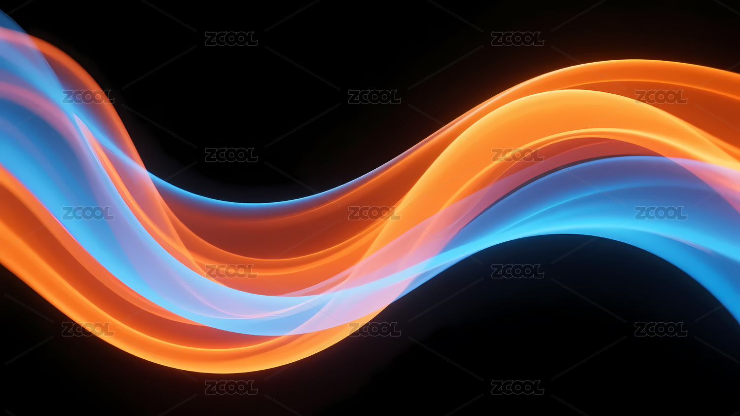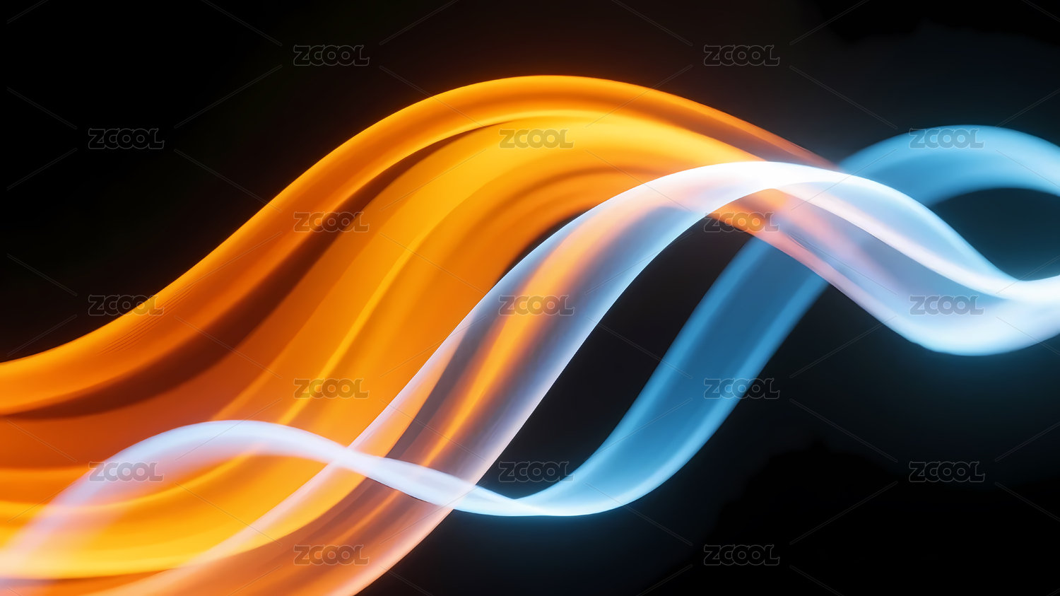 黑色背景橙蓝波浪线条