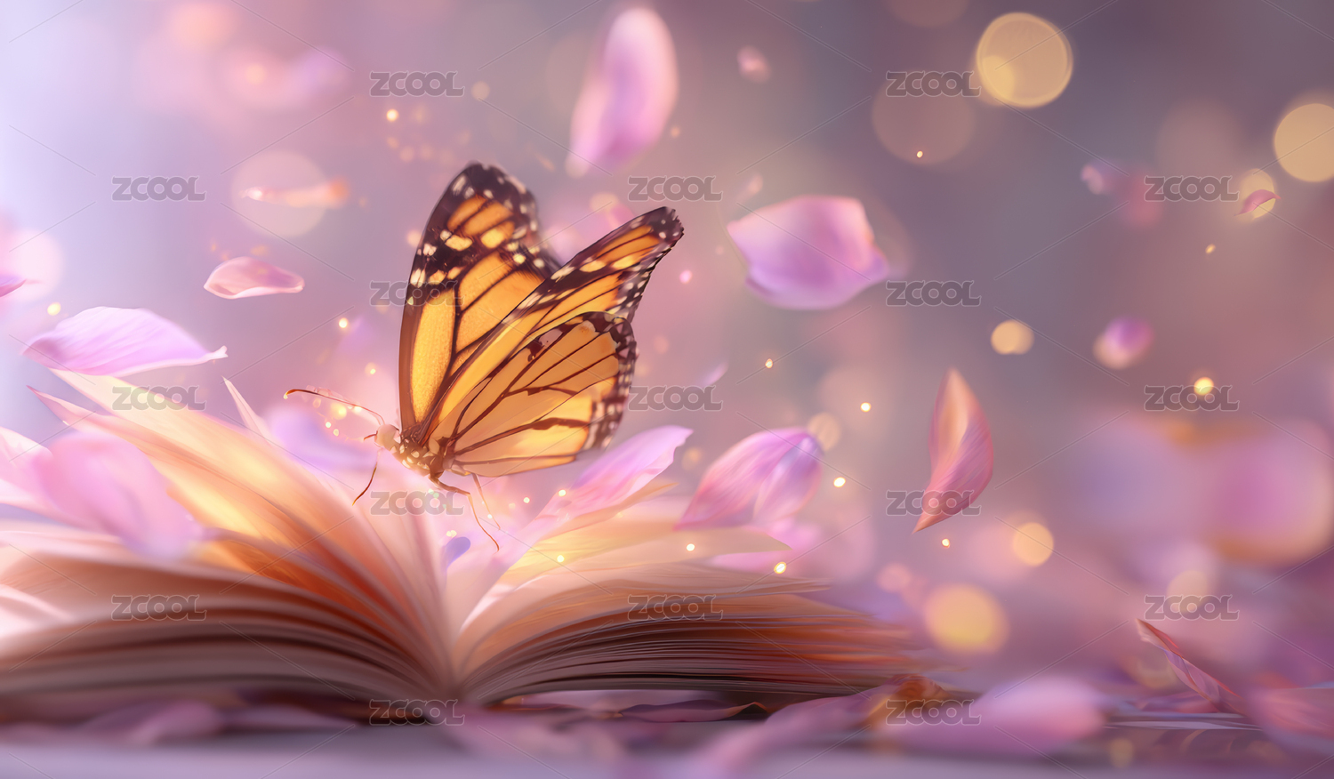 梦幻书籍与花瓣