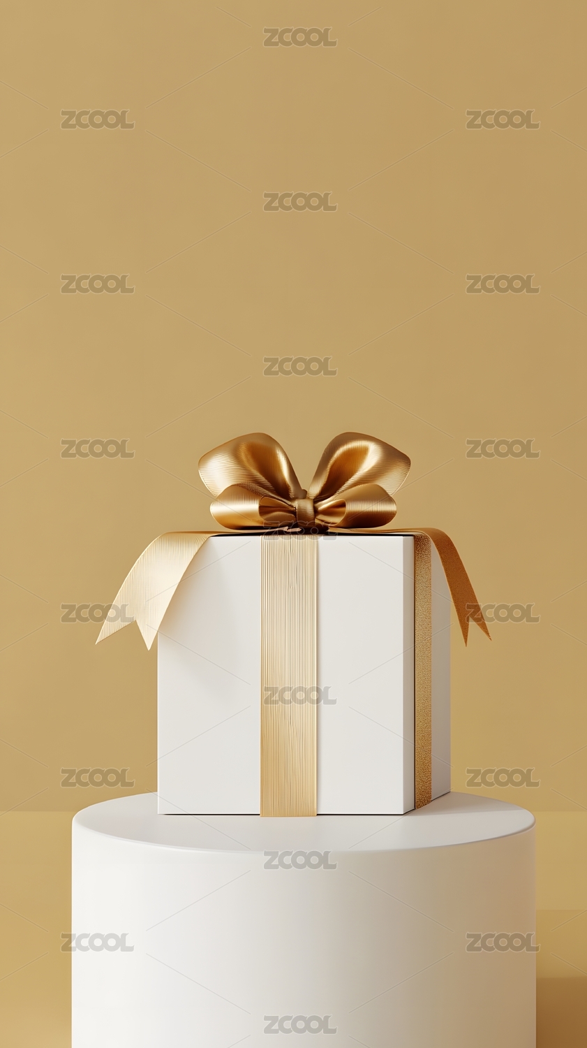 白色礼品盒金色丝带背景