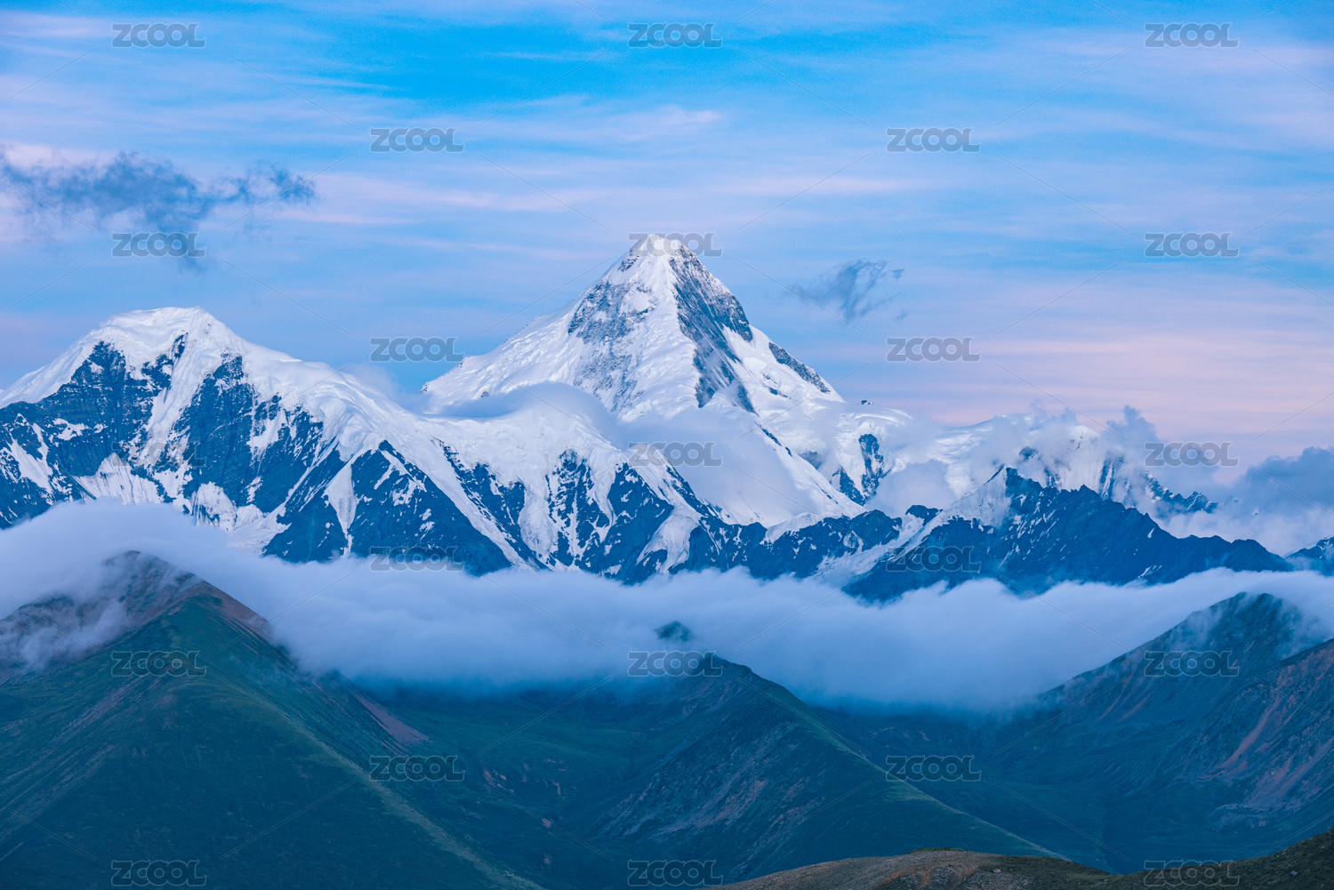 四川贡嘎雪山主峰傍晚云雾飘渺