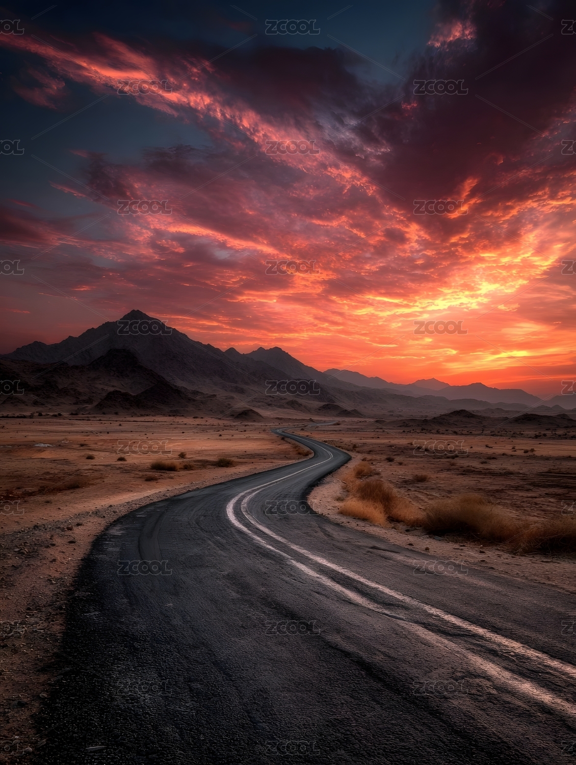 沙漠山路日落
