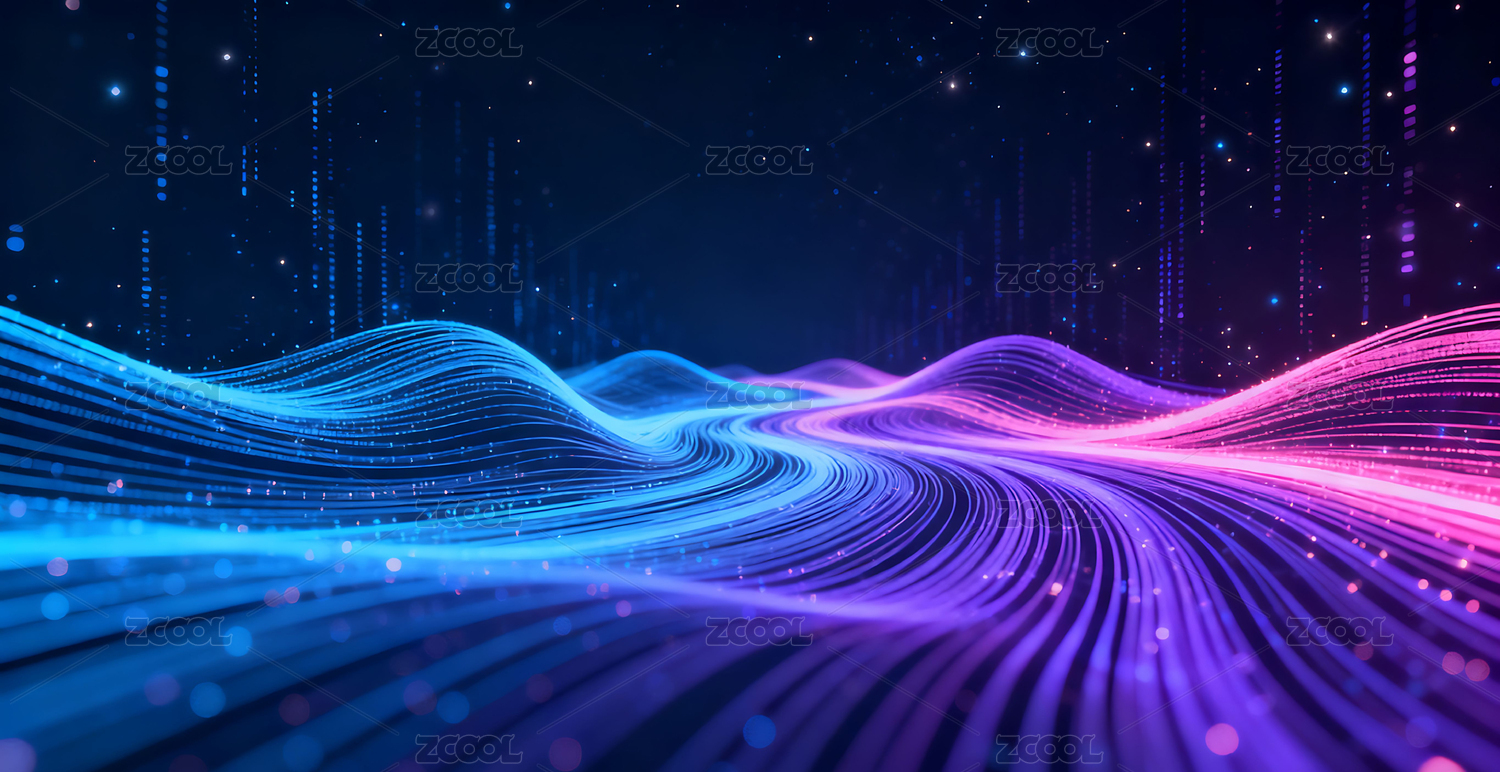 数据流,山峰,波浪,瀑布,抽象,蓝色,光影,三维,夜空,场景
