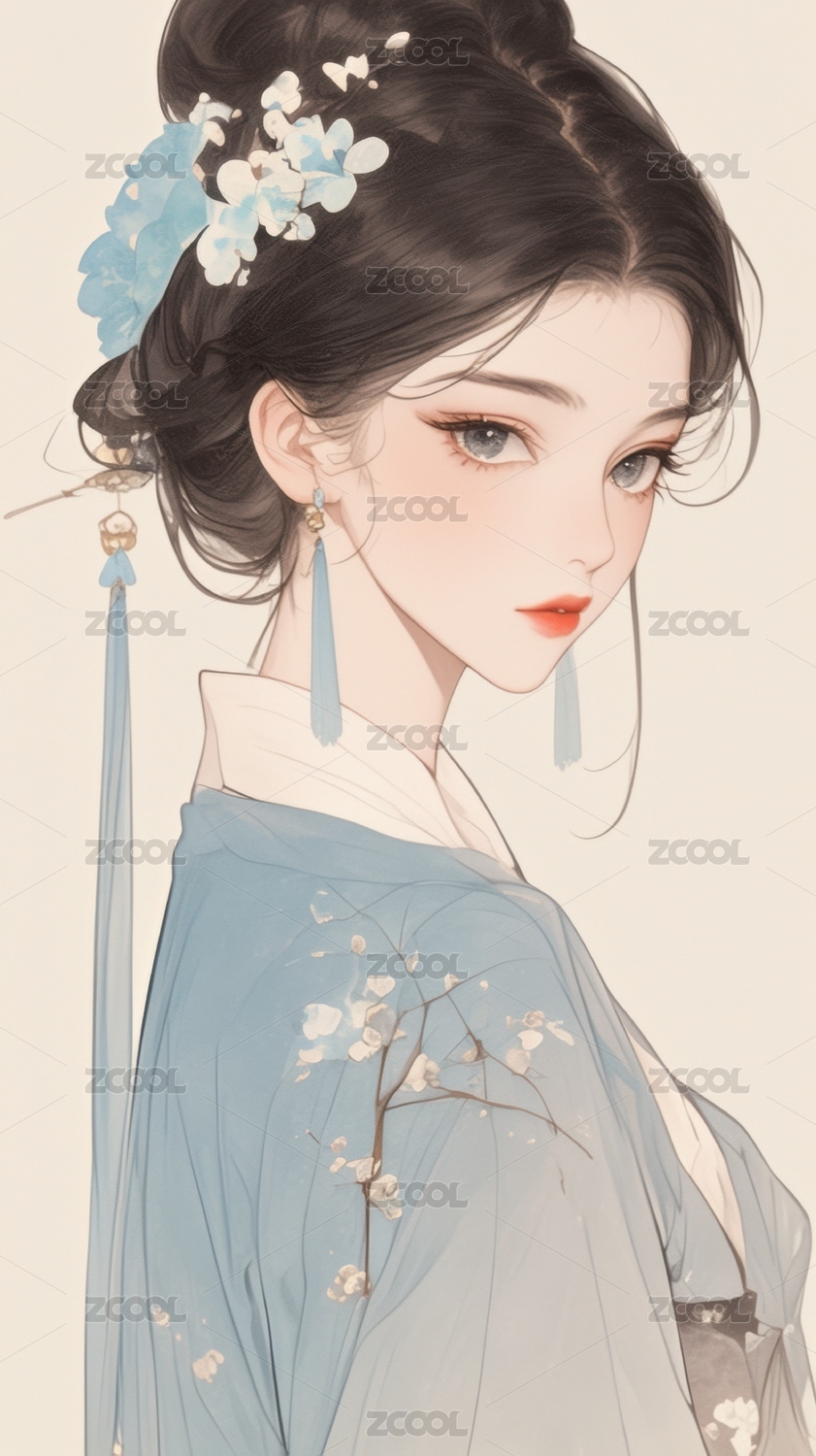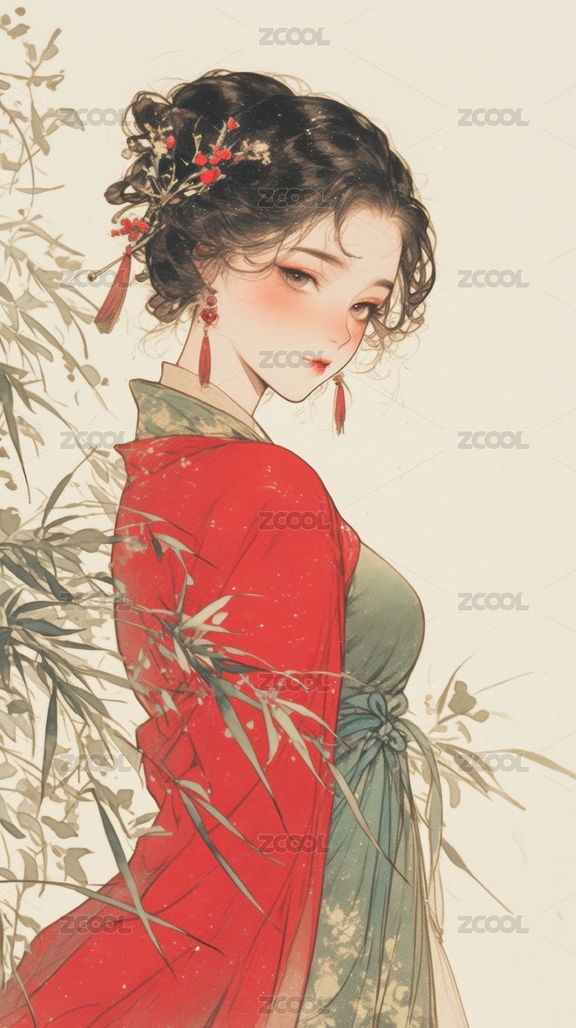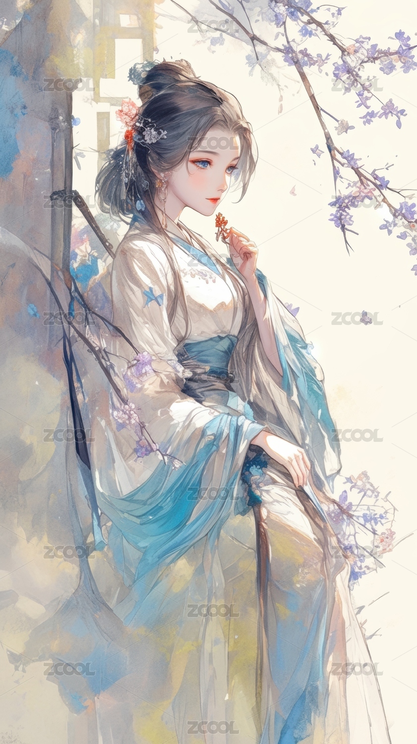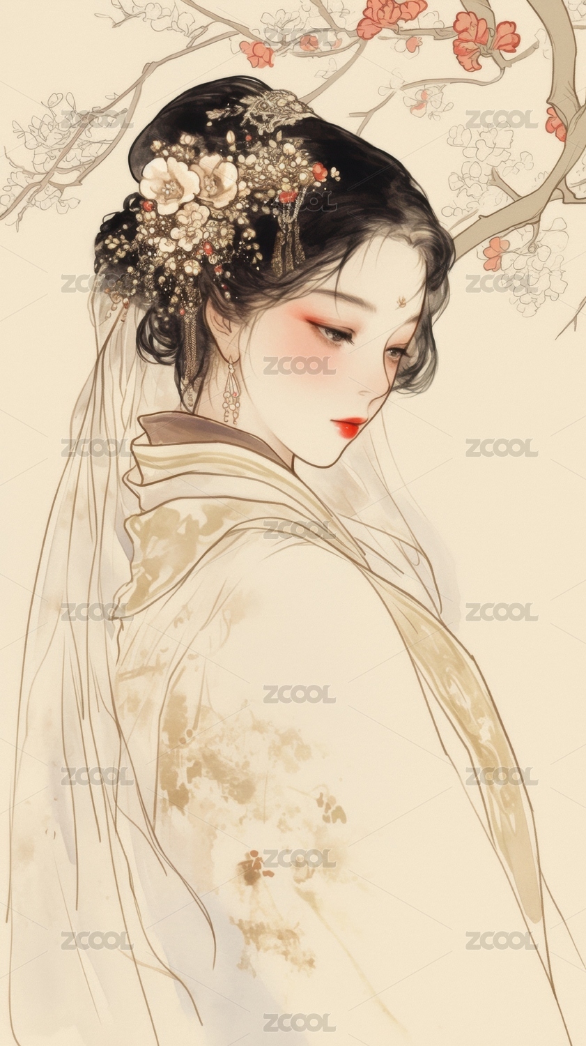 背景,插画,卡通,漫画,传统,文化,服饰,女子,古风,优雅