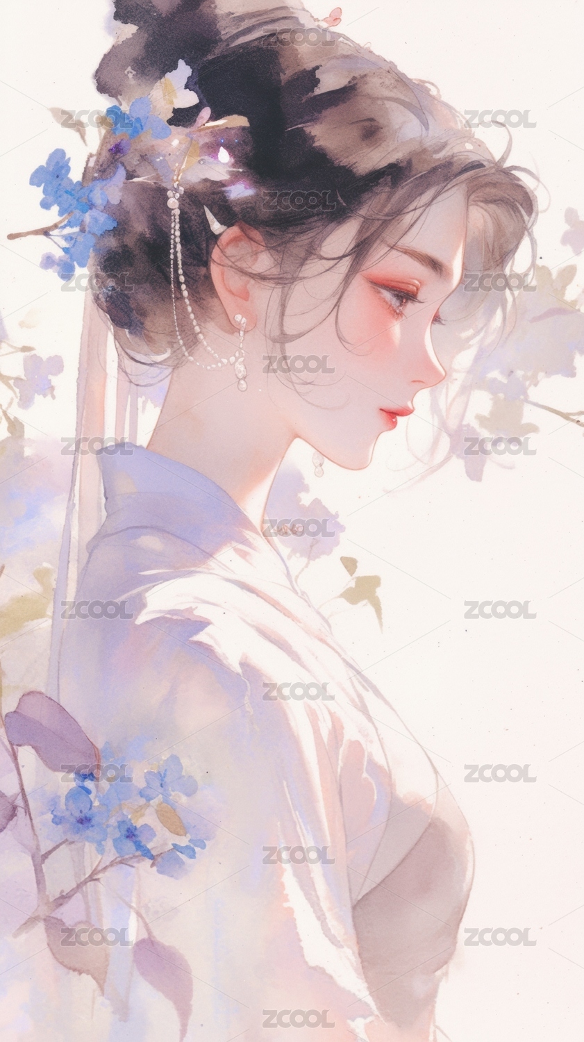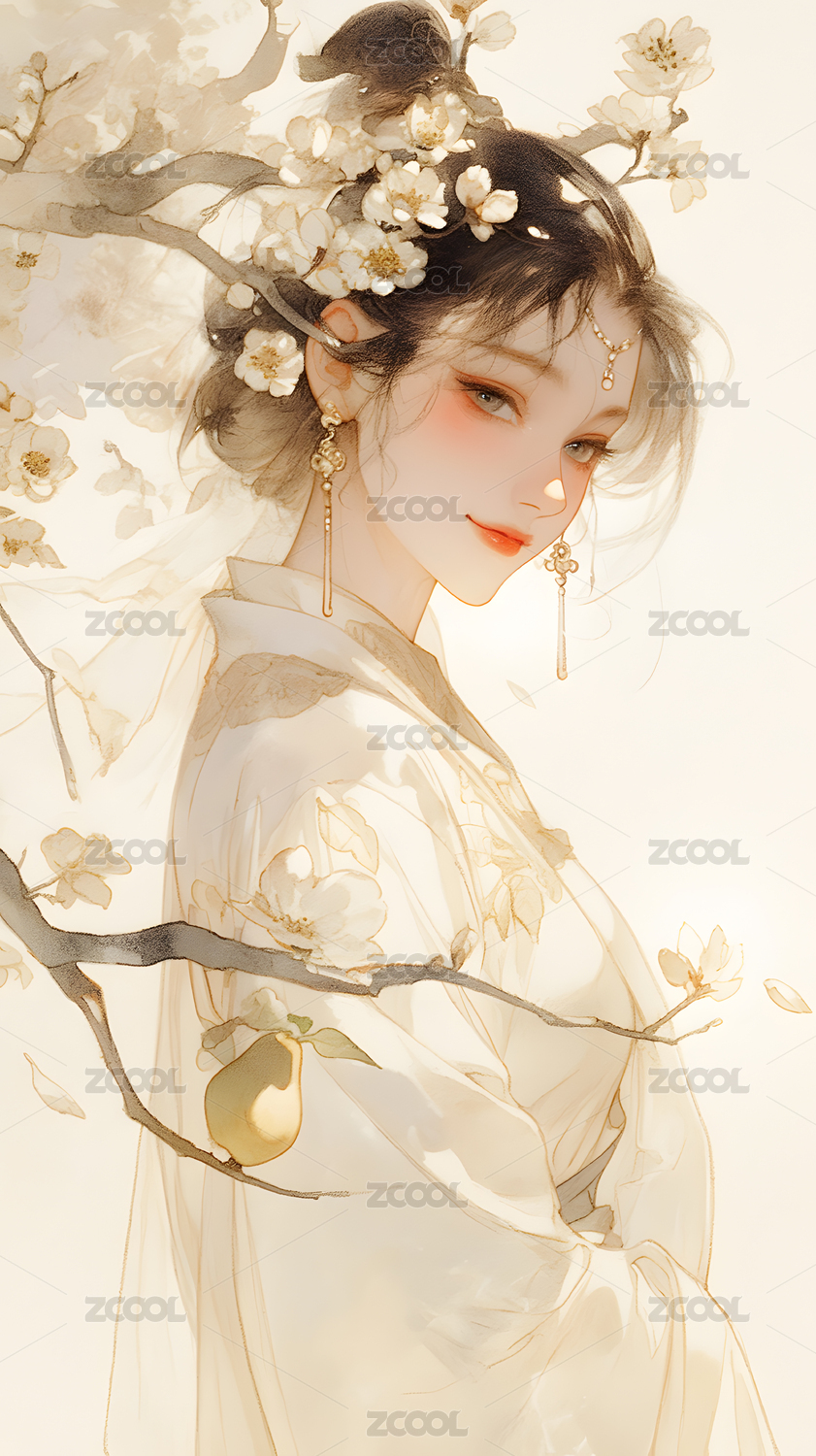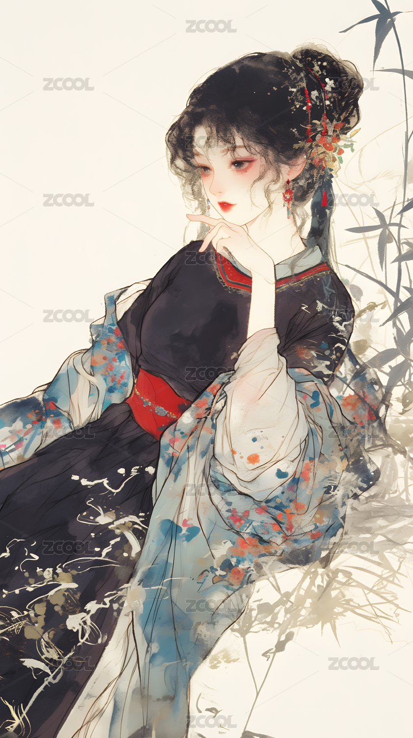 背景,插画,卡通,漫画,传统,文化,服饰,女子,古风,优雅