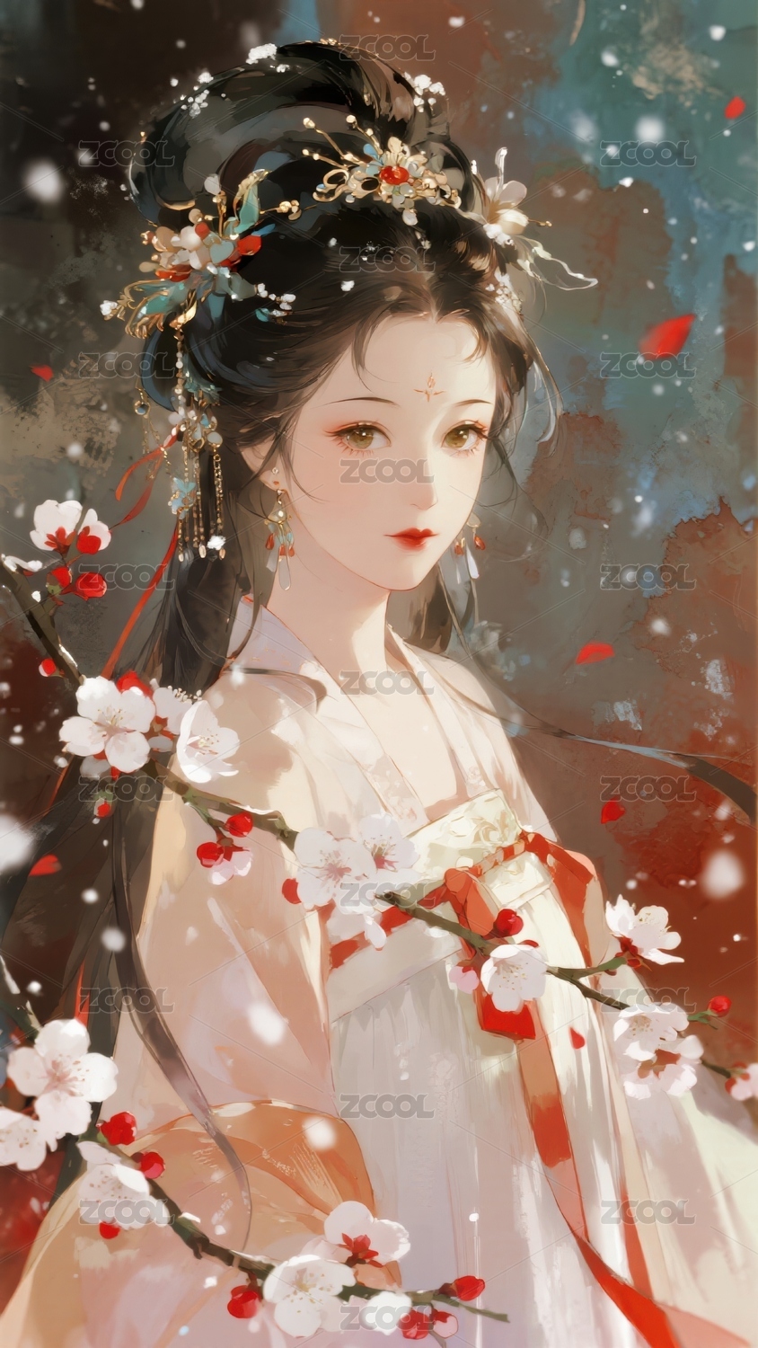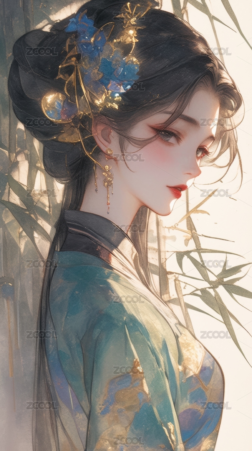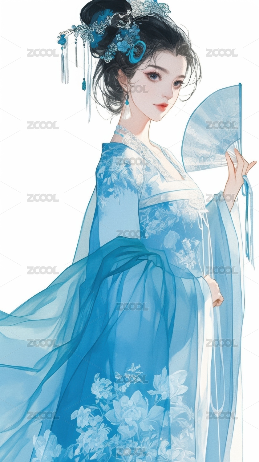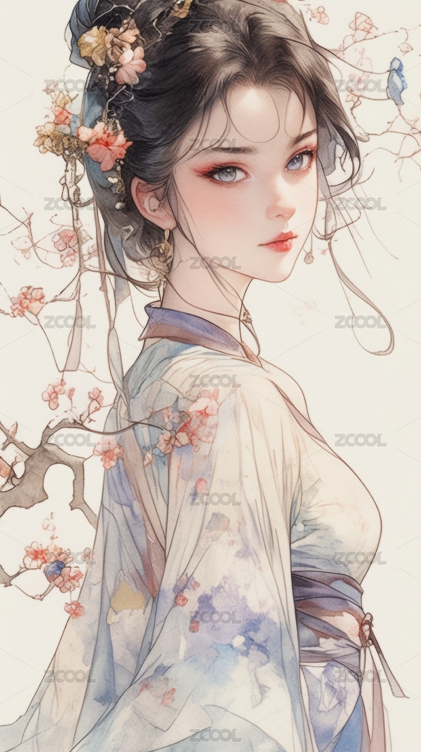 背景,插画,卡通,漫画,传统,文化,服饰,女子,古风,优雅