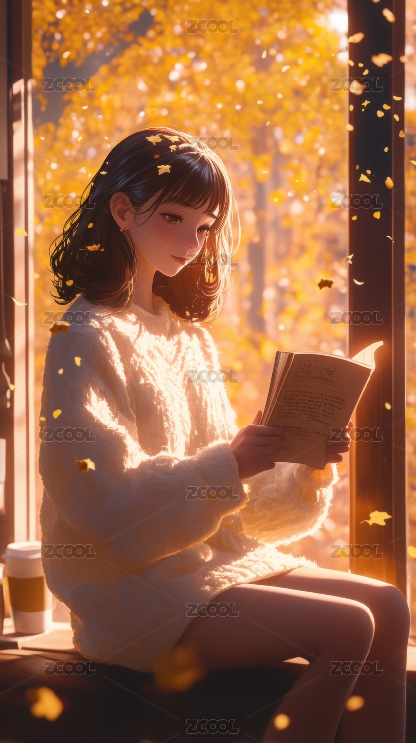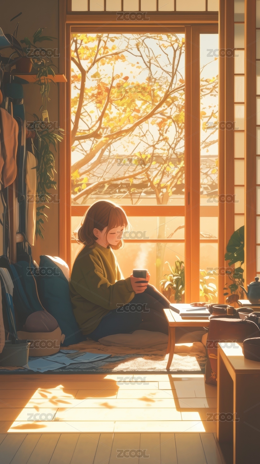 自然,温暖,光影,植物,少女,窗边,阳光,室内,温馨,生活