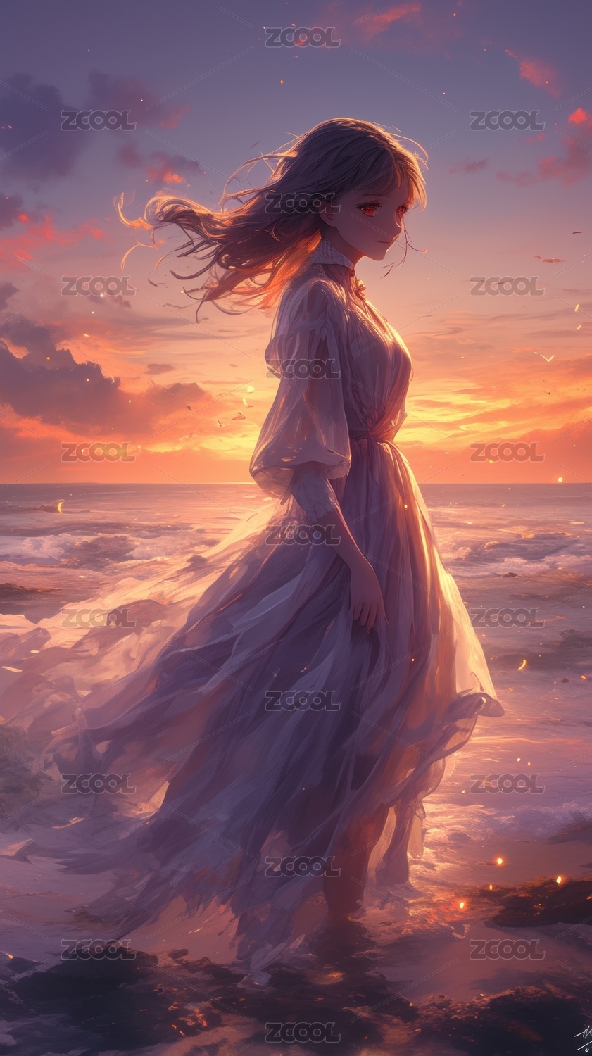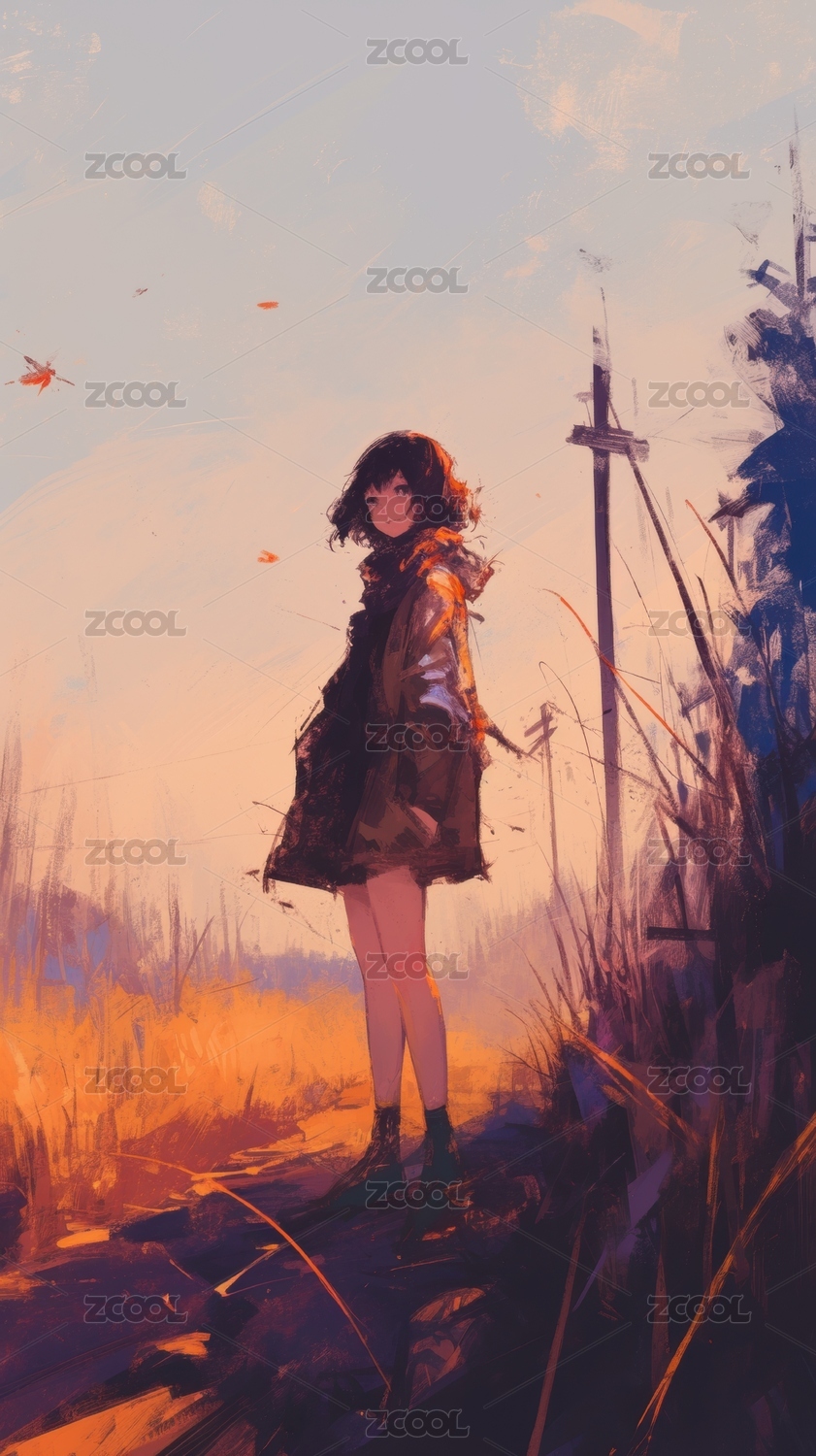 自然,天空,梦幻,插画,卡通,漫画,色彩,夕阳,元素,背景