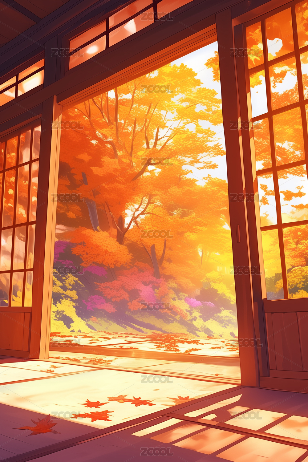 秋天白天阳光明亮的门外金黄色原野3D插画