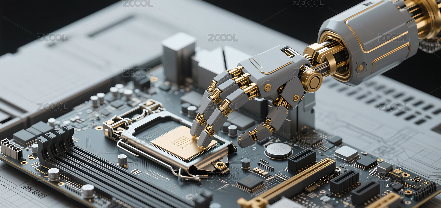 芯片,背景,三维,场景,电路板,机械臂,机器人,科技,商务,渐变