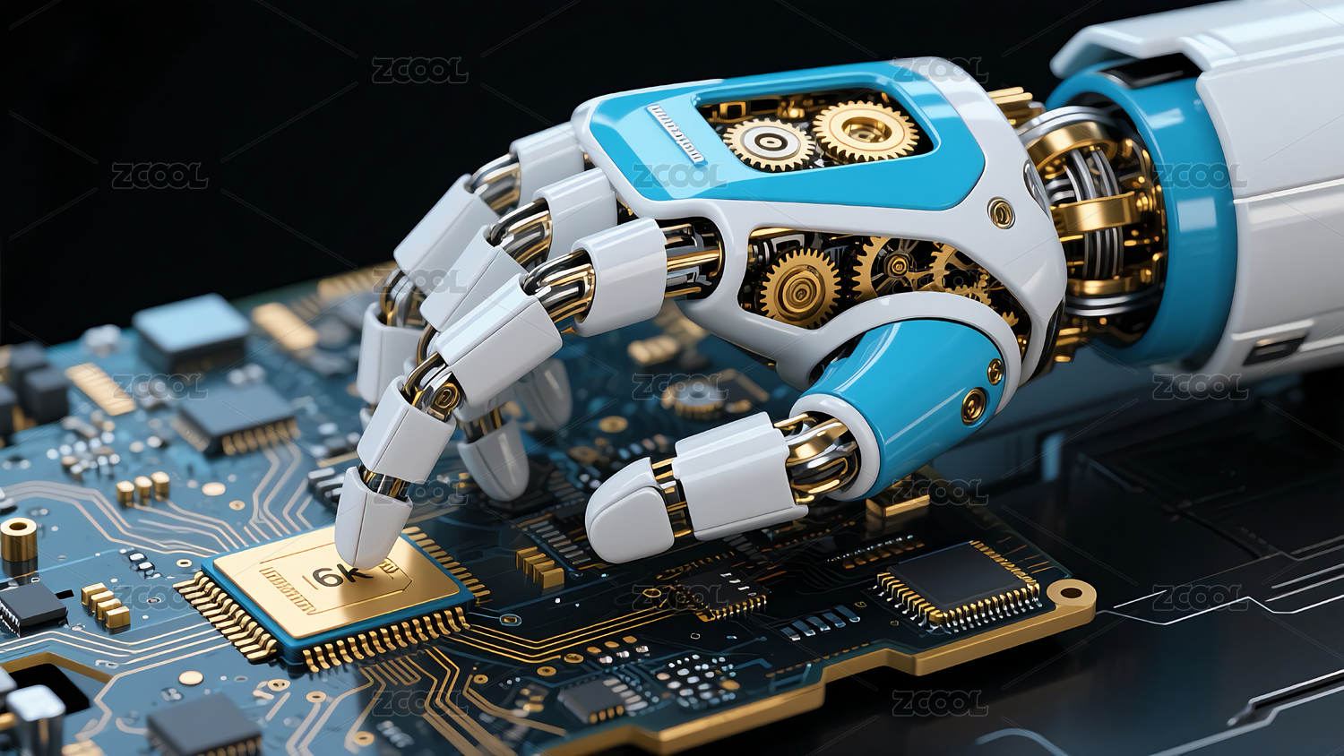芯片,背景,三维,场景,电路板,机械臂,机器人,科技,商务,渐变