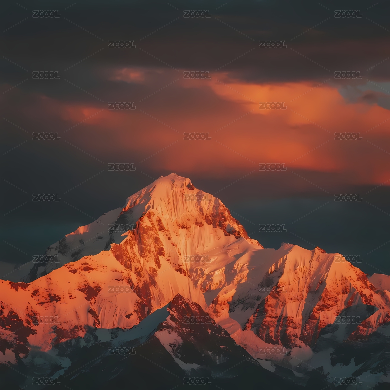 雪山之巅夕阳映照