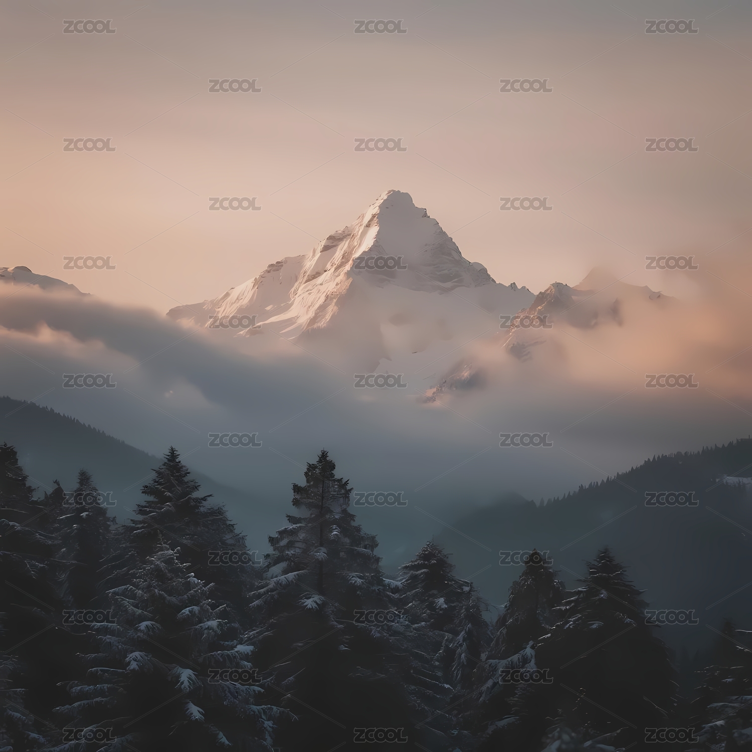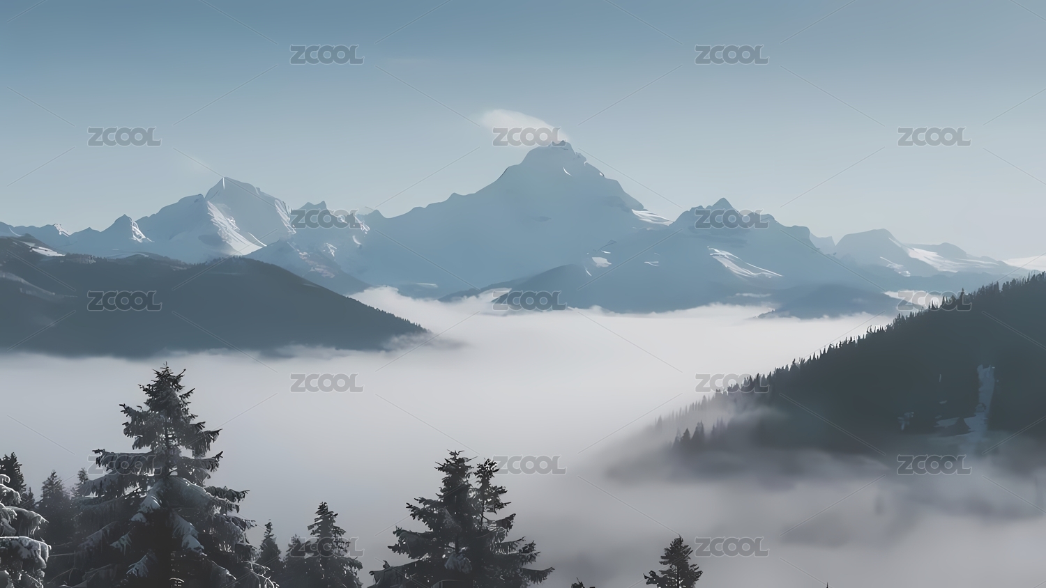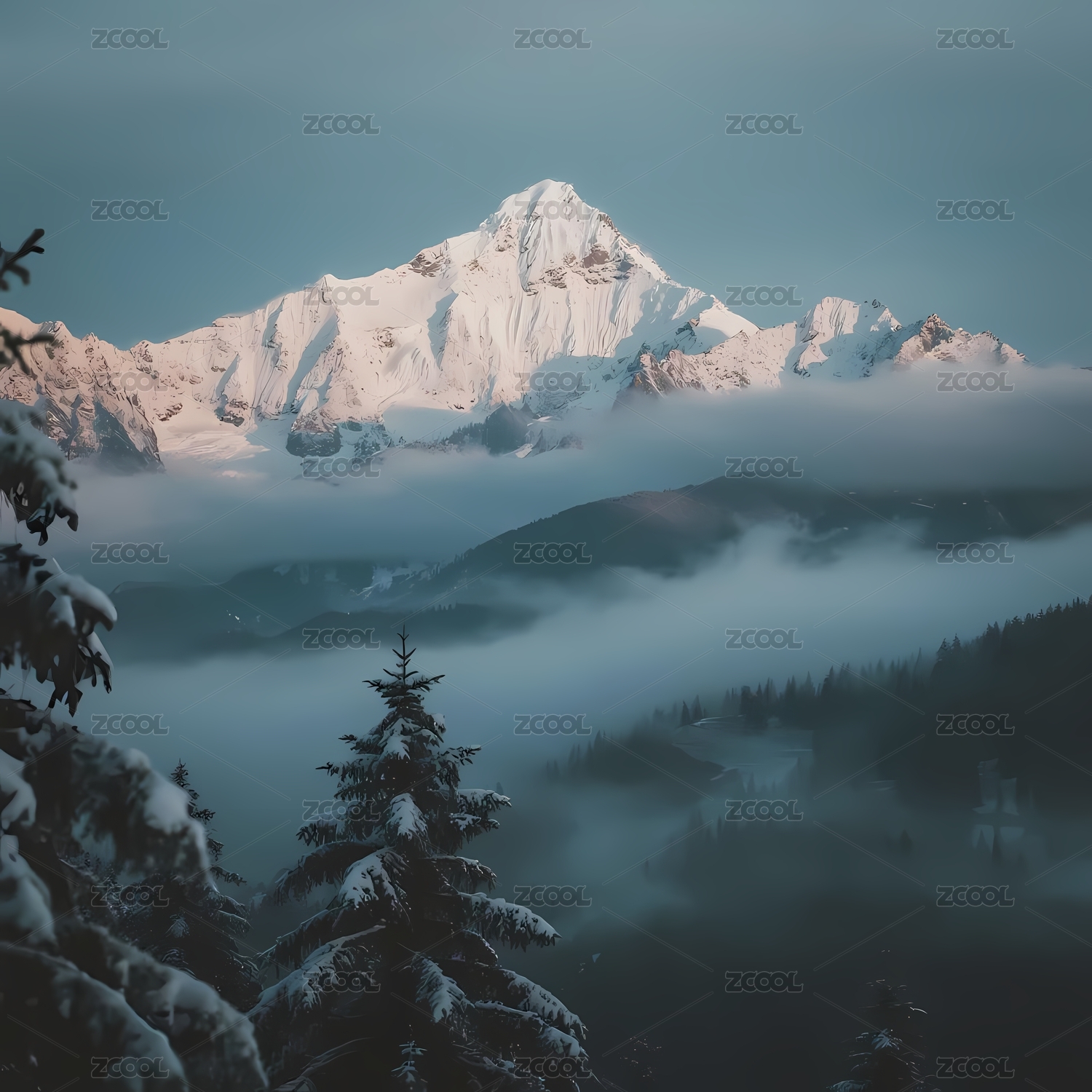 雪山,自然,白色,壮丽,环境,户外,山峰,景观,云海,森林