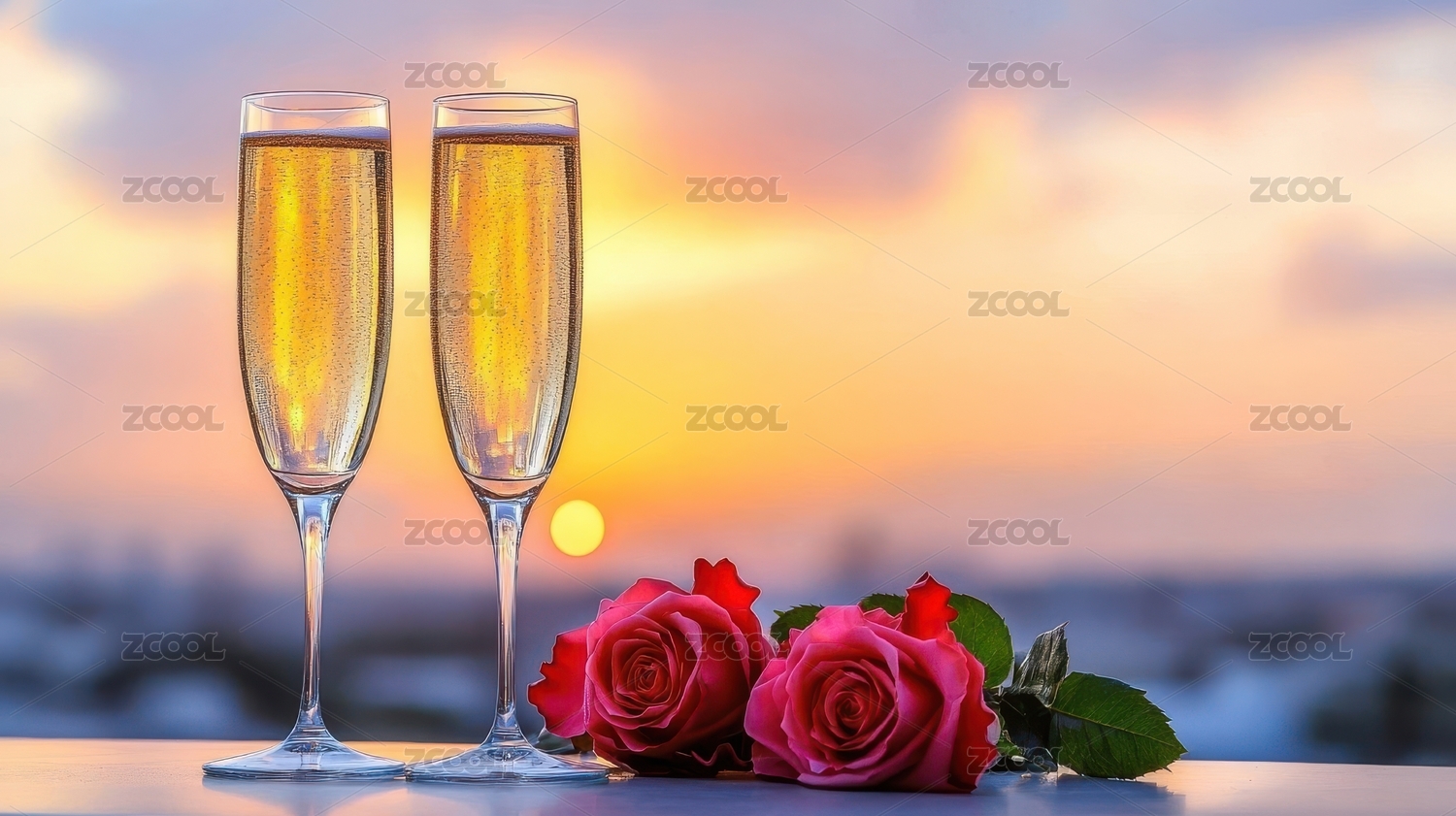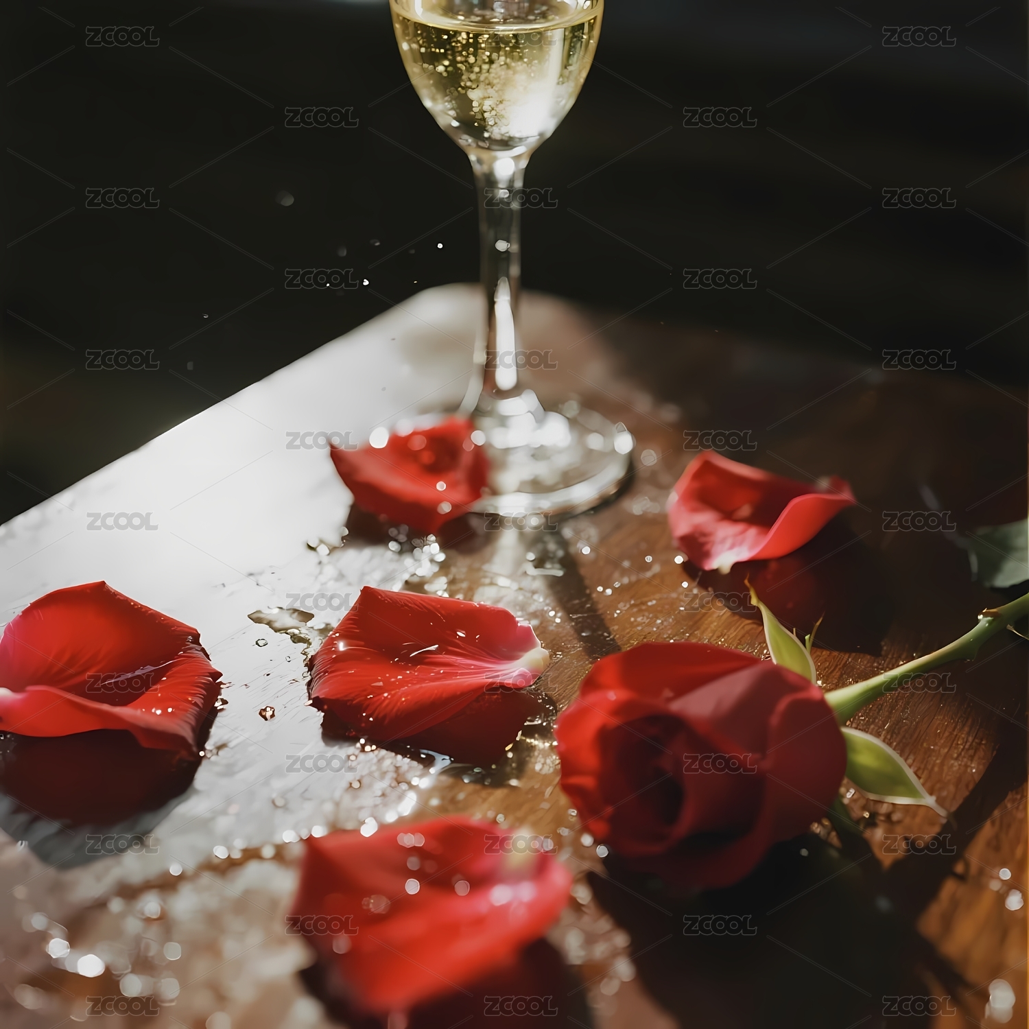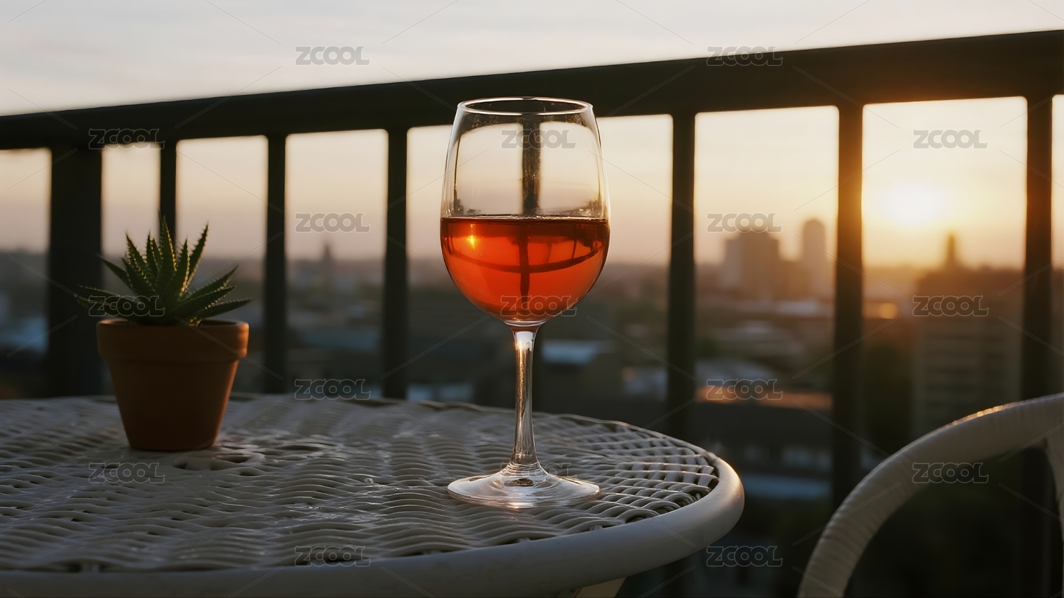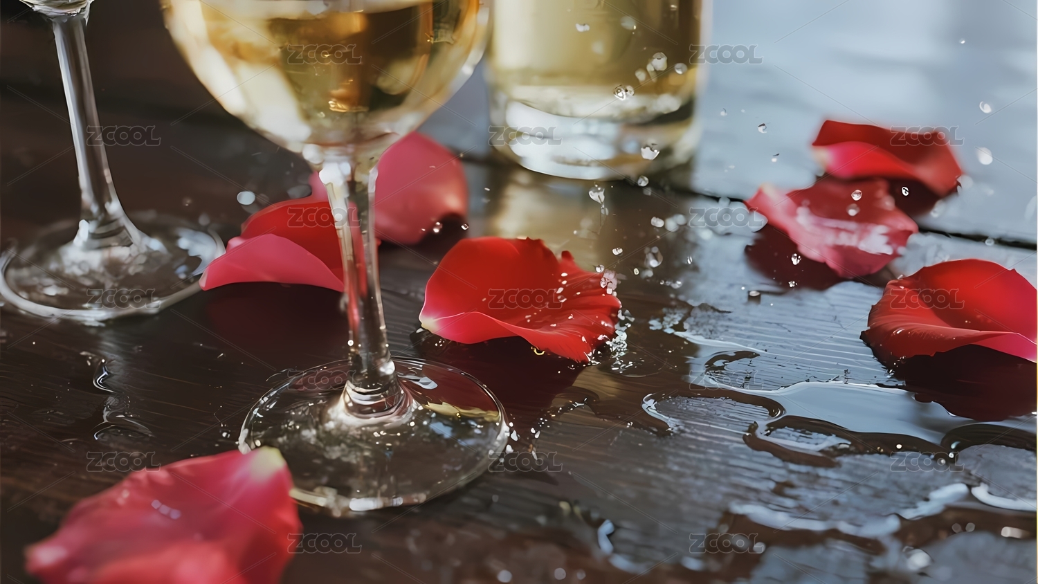花瓣,绿叶,静物,红酒杯,红玫瑰,木桌,城市,天际线,阳台,户外
