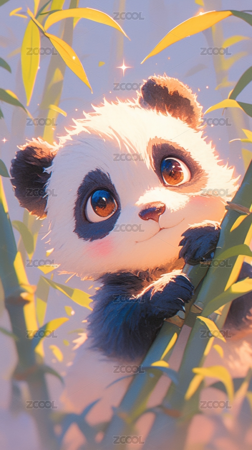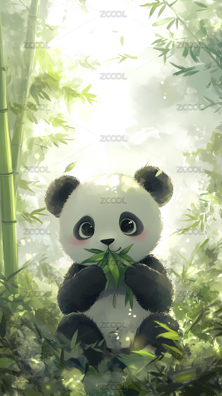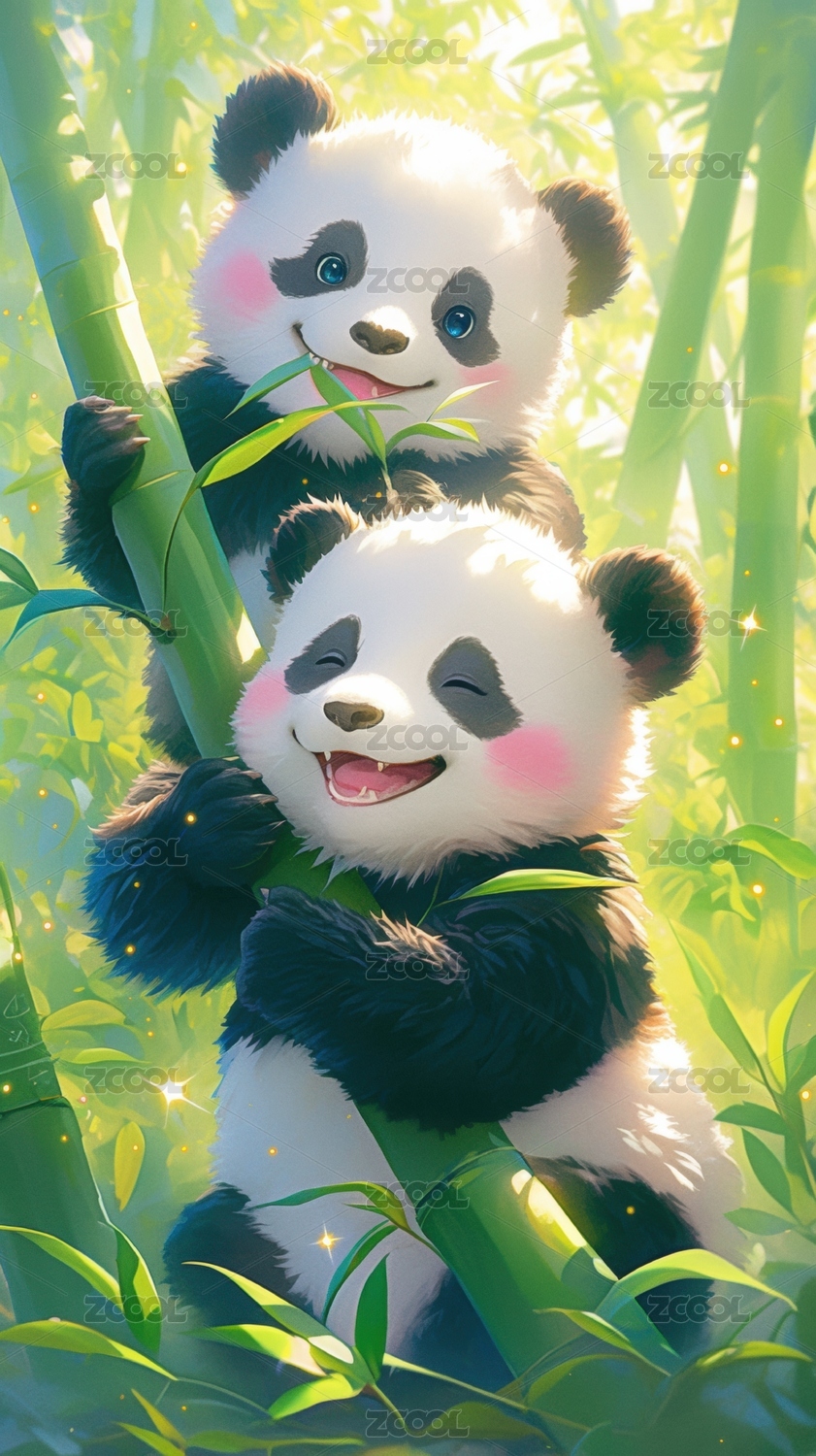 熊猫,插画,卡通,阳光,自然,可爱,绿色,生态,生动,户外