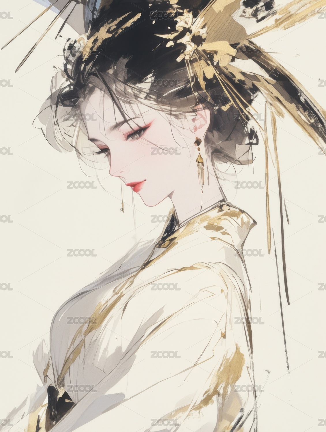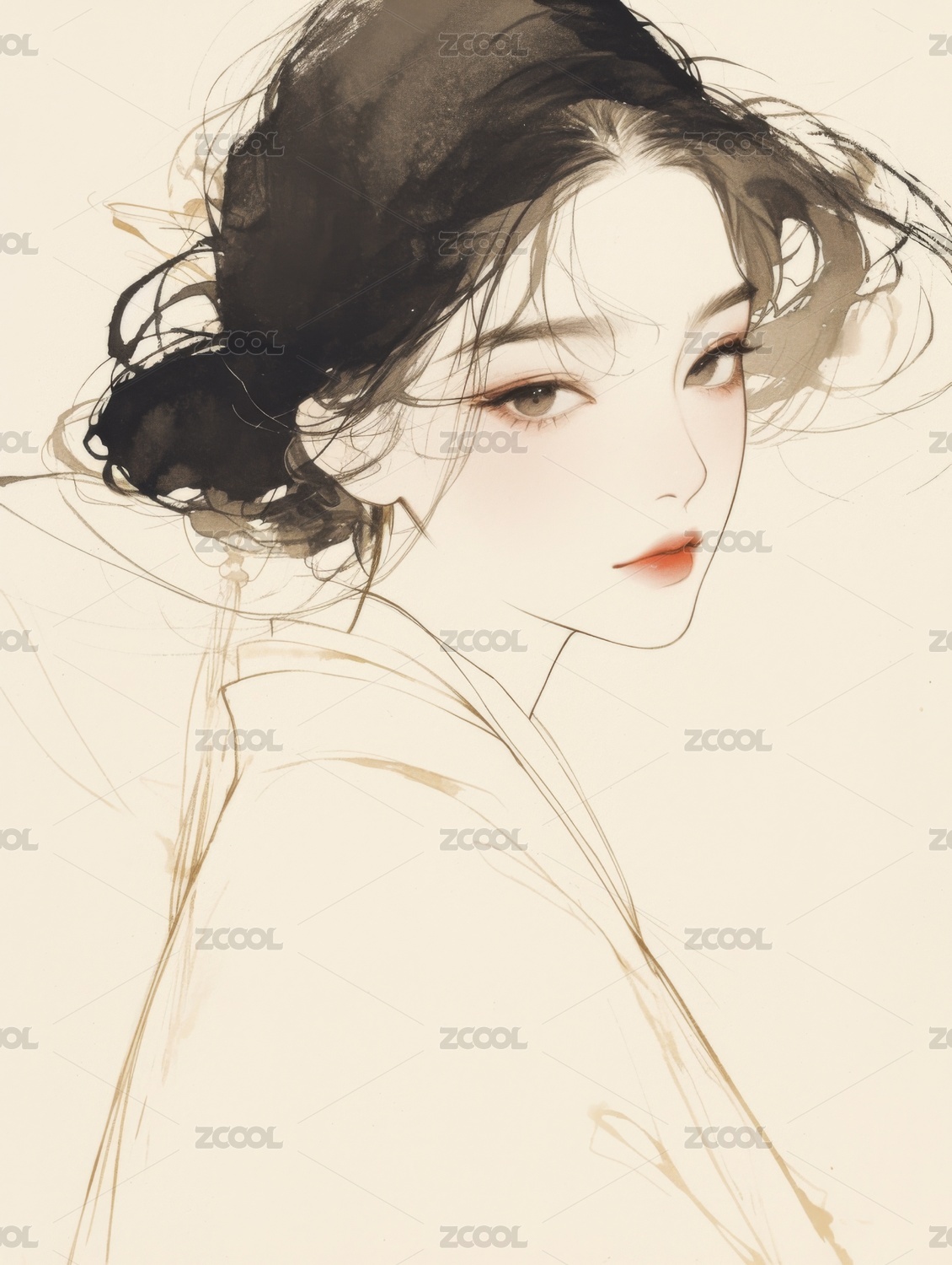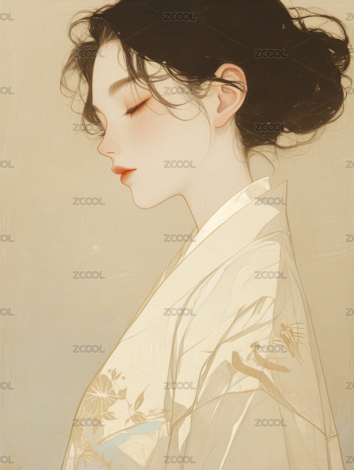 艺术,背景,温柔,表情,优雅,绘画,服饰,传统,美感,女性