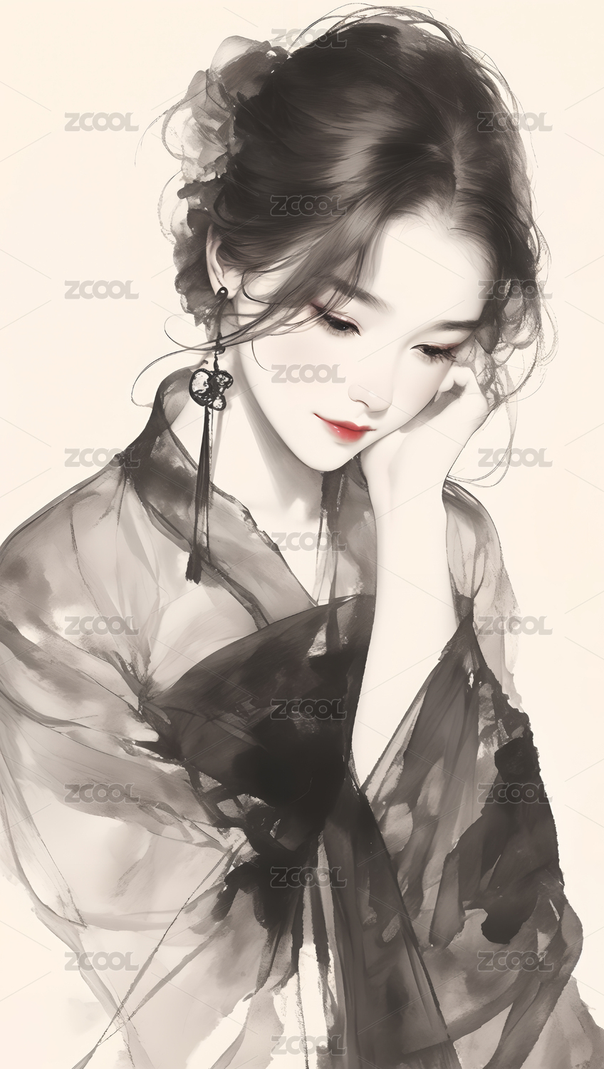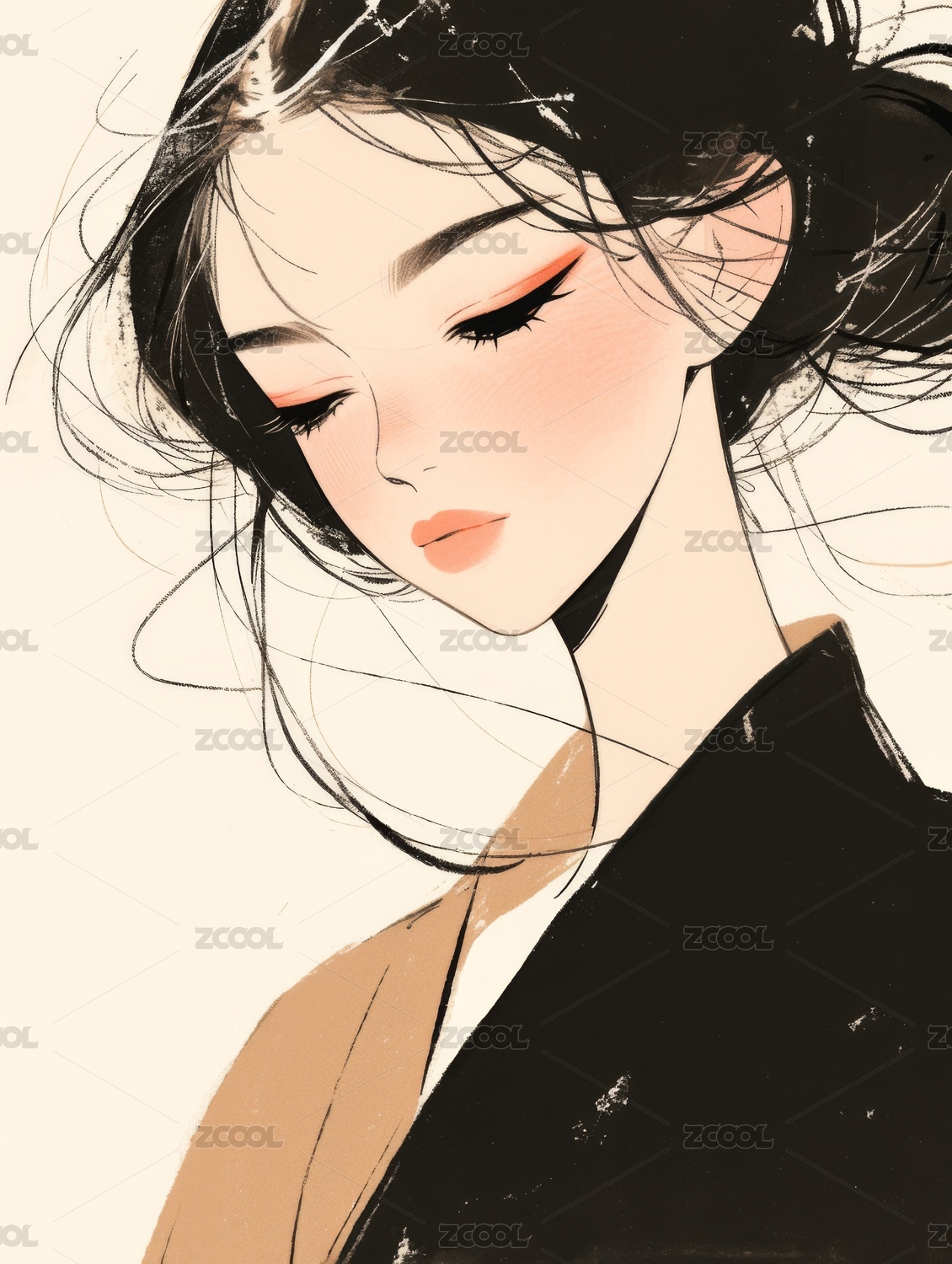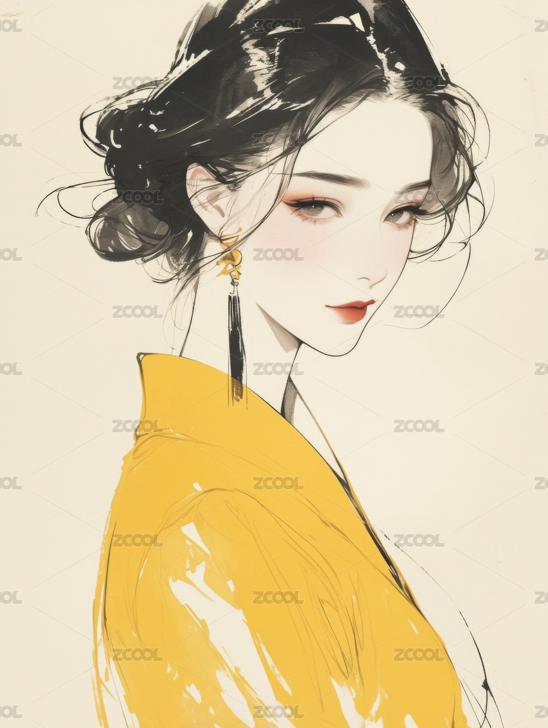 艺术,背景,温柔,表情,优雅,绘画,服饰,传统,美感,女性