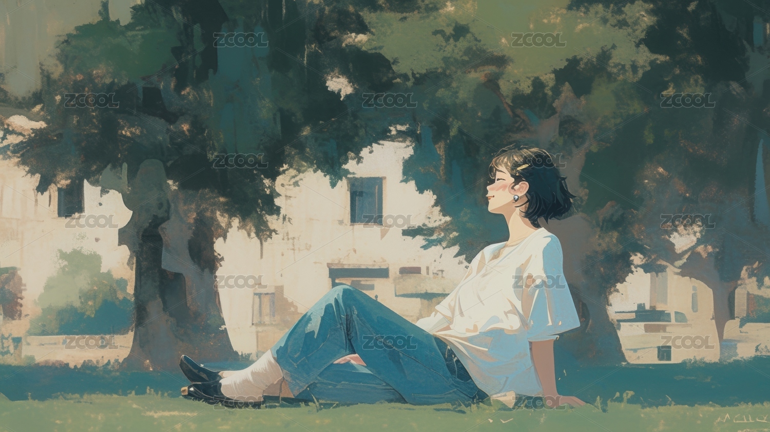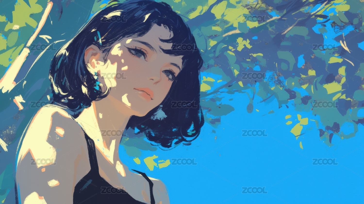 夏天树下日漫少女插画
