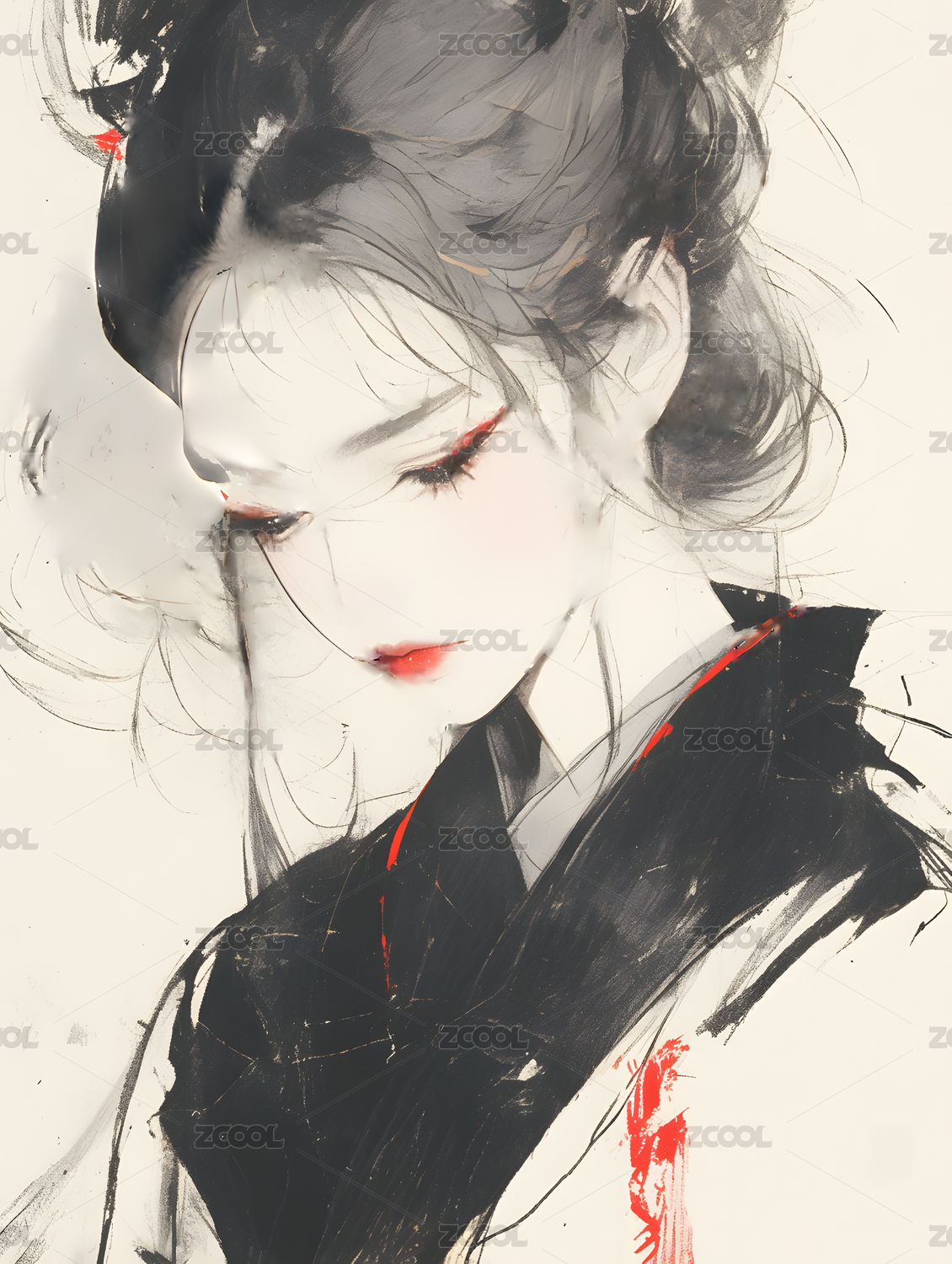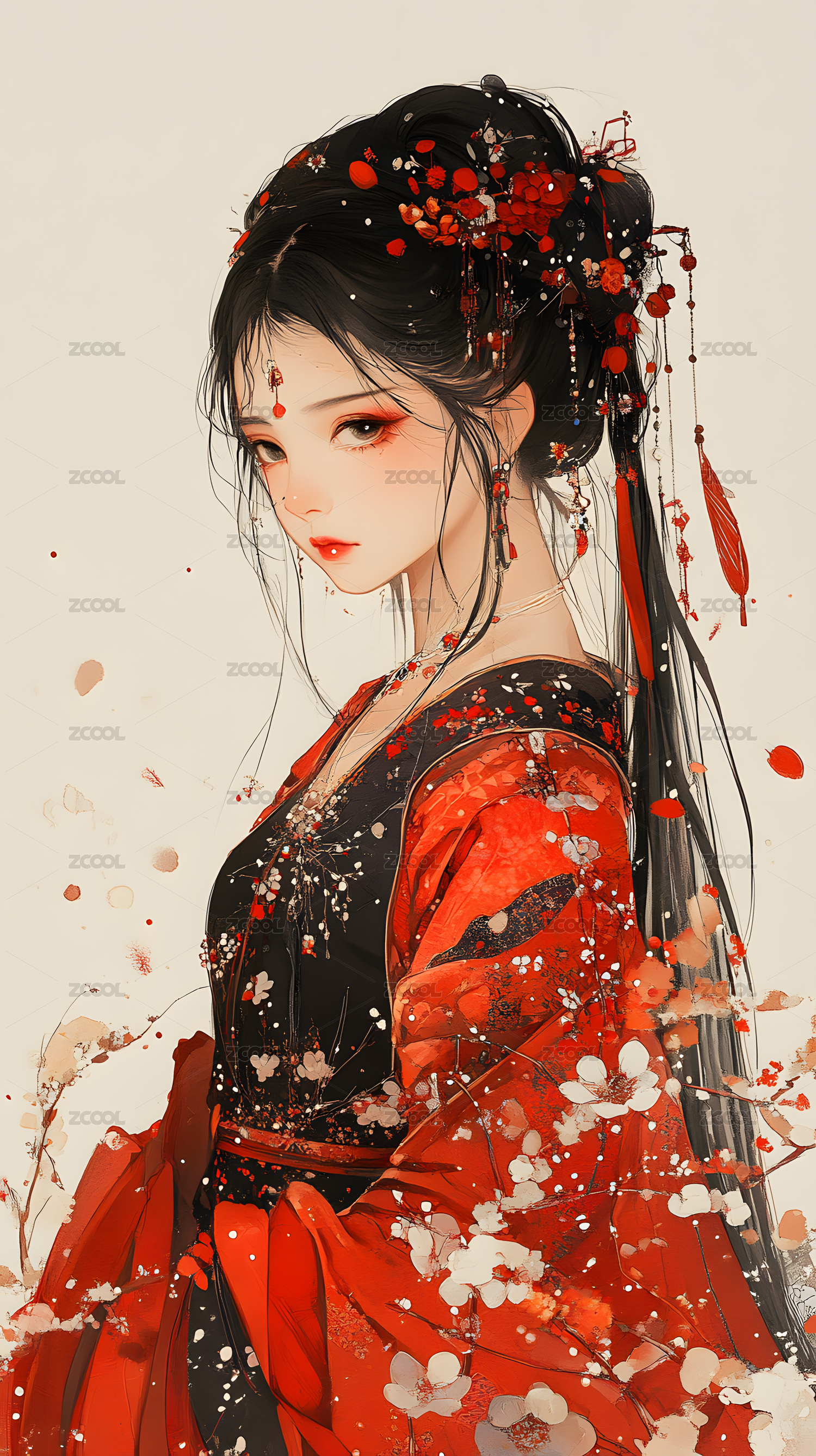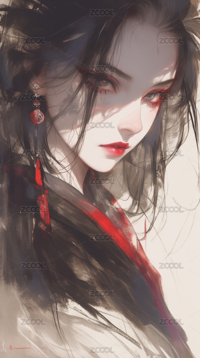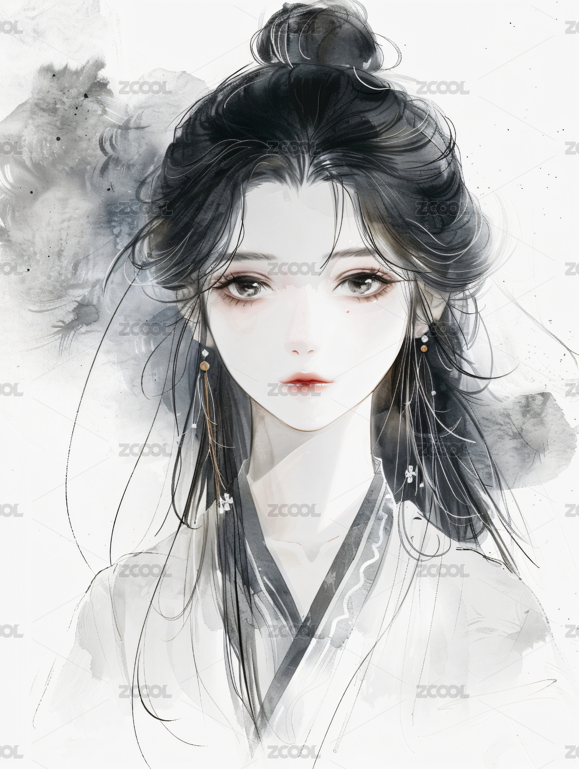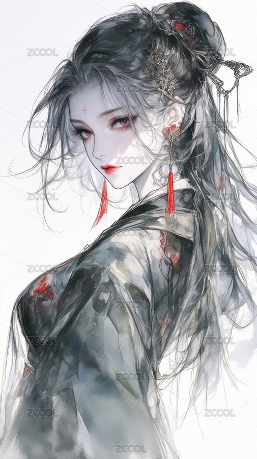 柔美,梦幻,艺术,长发,背景,女子,细节,优雅,绘画,飘逸