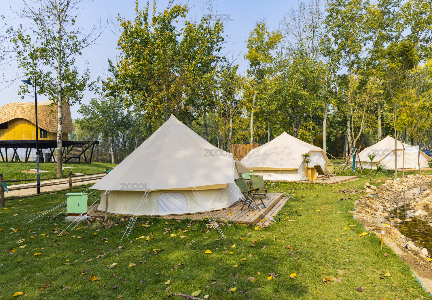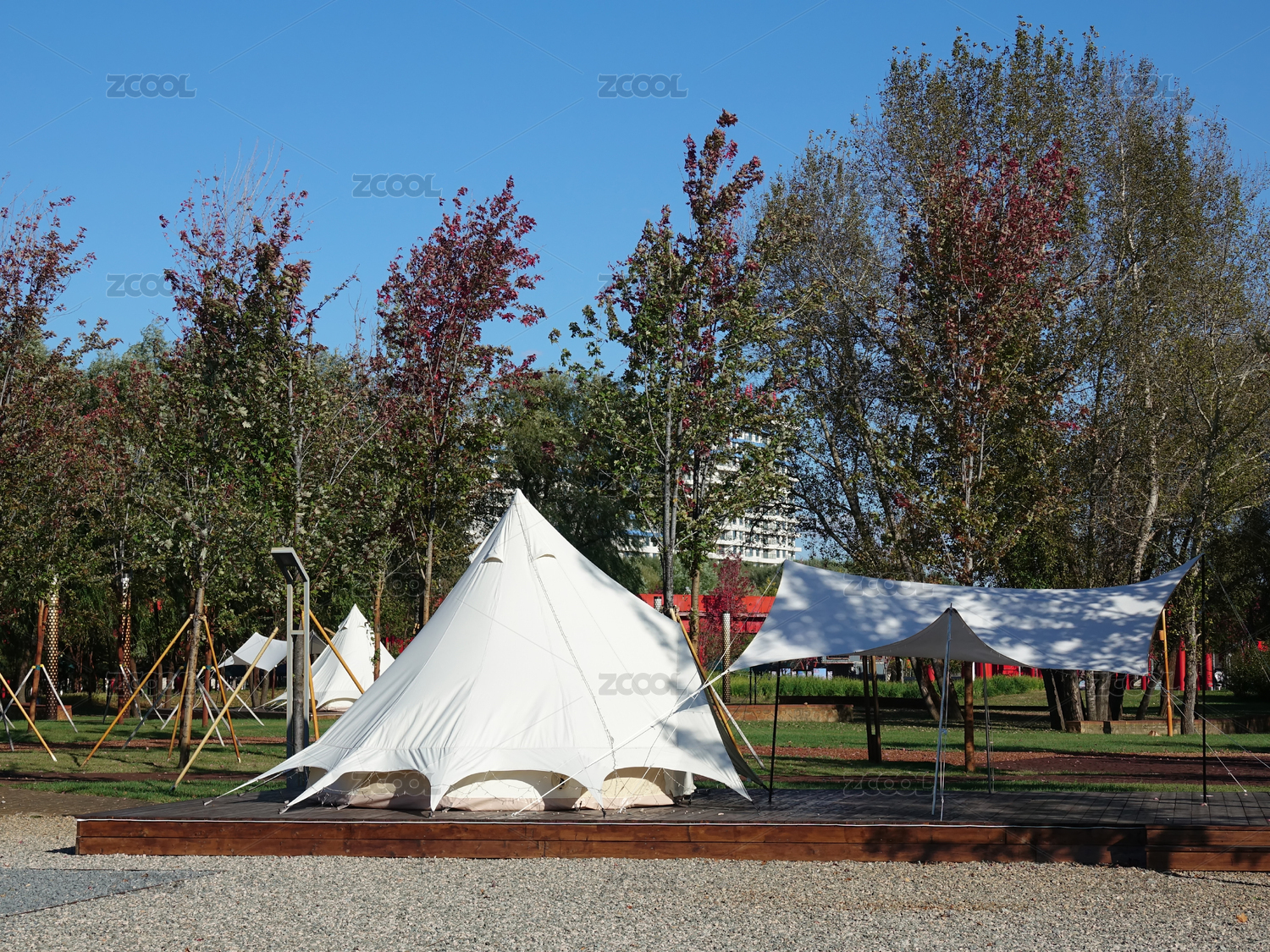 露营地里的帐篷-夏日里的中国长春南湖公园