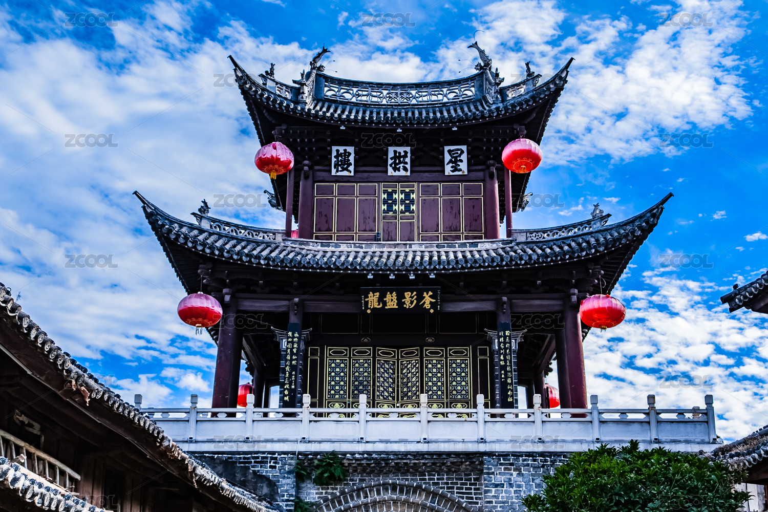 云南,大理,巍山古城,巍山,星拱楼,老街,传统,建筑,蓝天,古街
