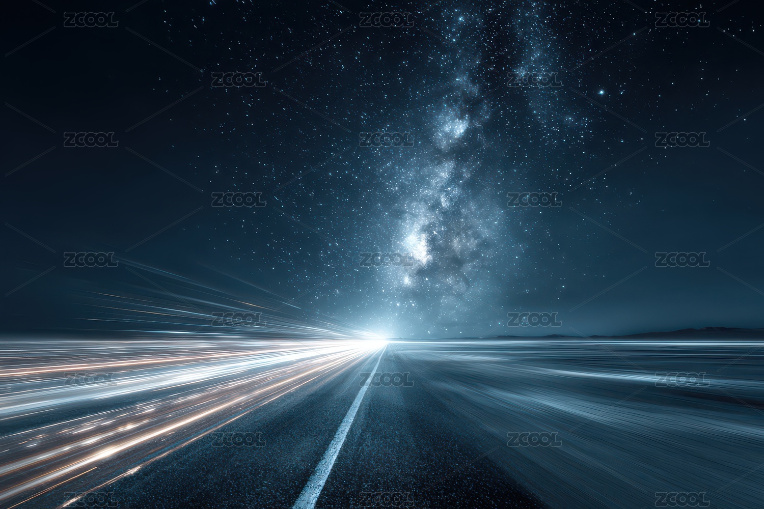 梦幻,星光,夜空,沙漠,公路,银河,远方,光束