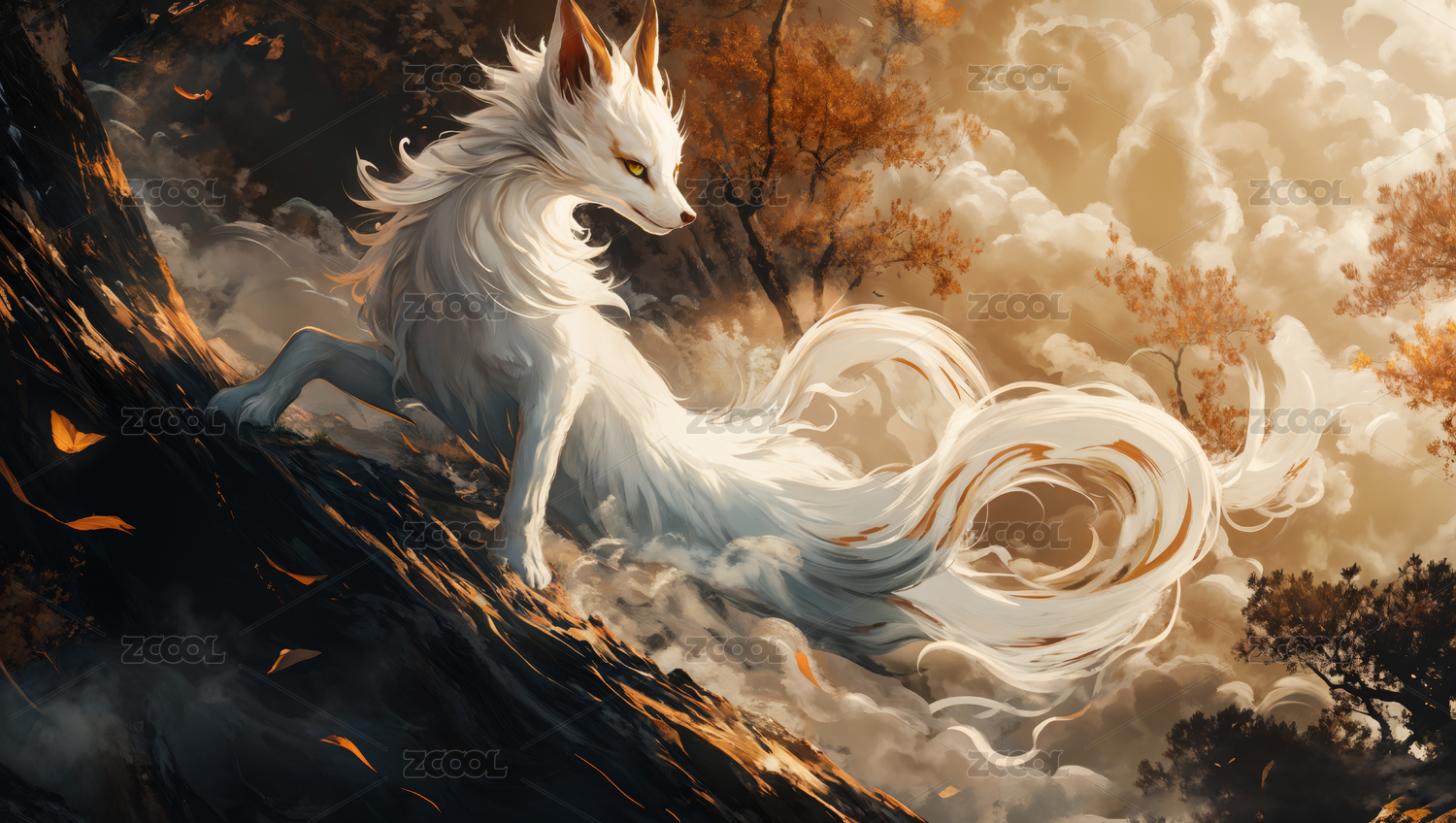 自然,宁静,动物,人物,生物,光线,神秘,天空,远方,九尾狐