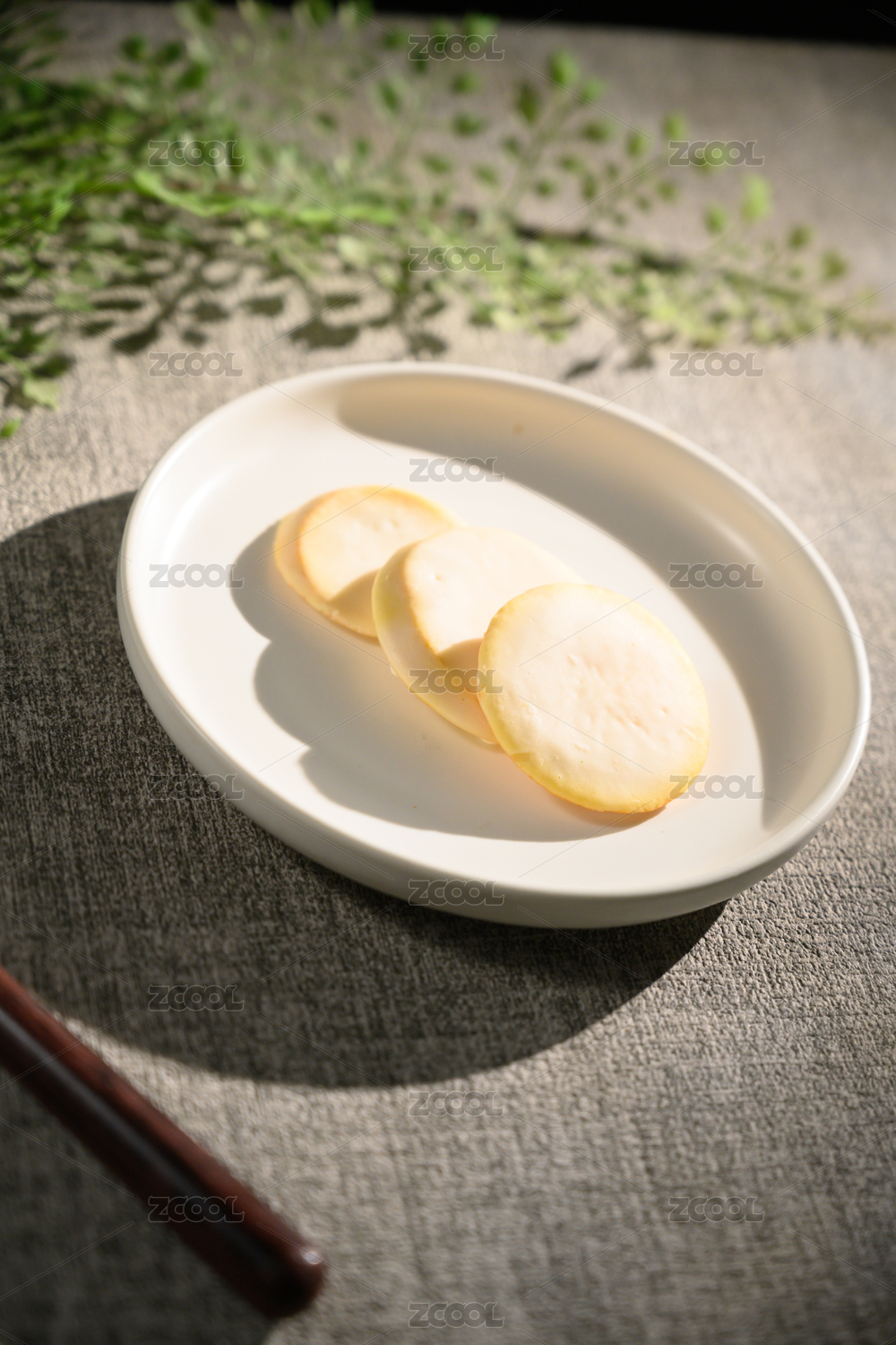 桌面上的盘子里的美味可口的白巧克力橙子片