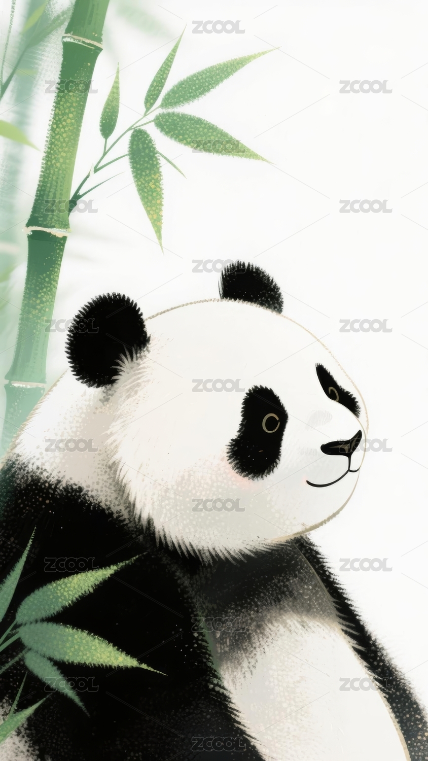 水墨画风格熊猫栖息竹林