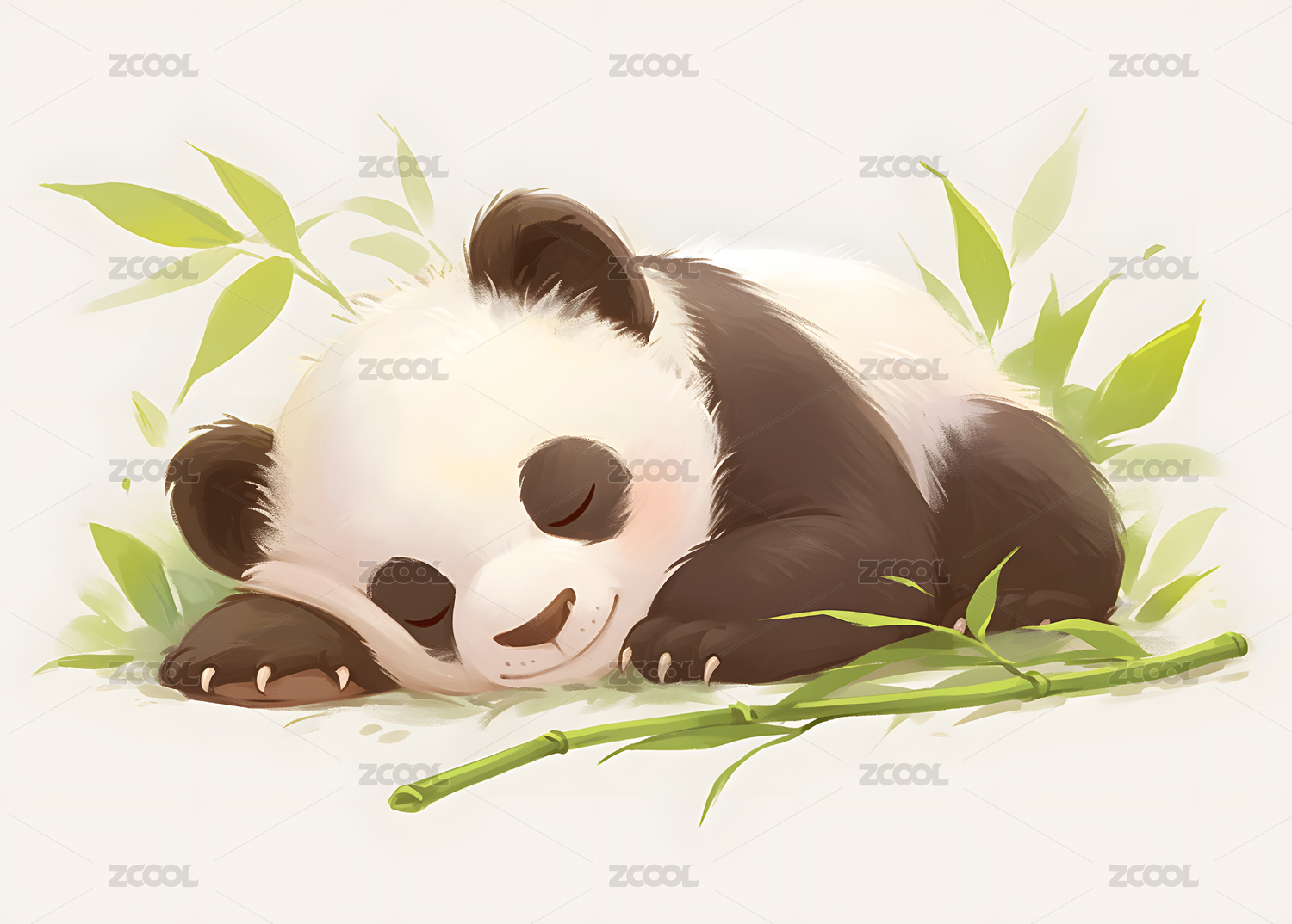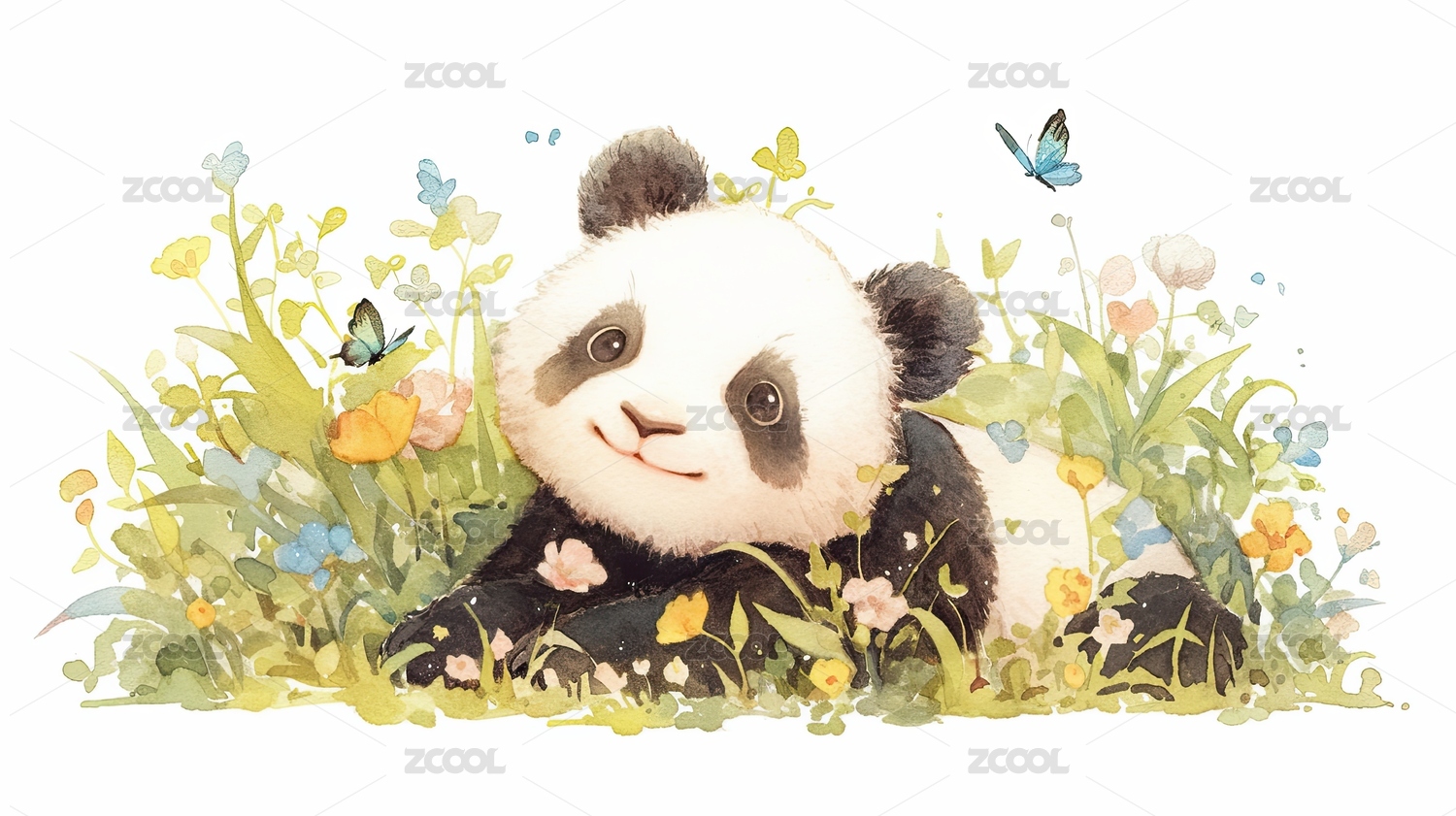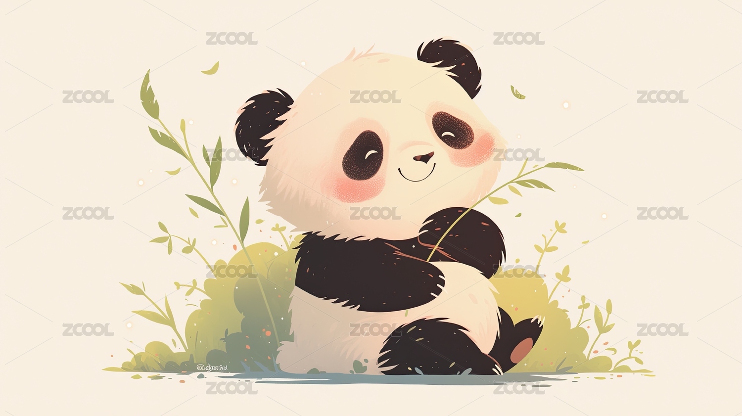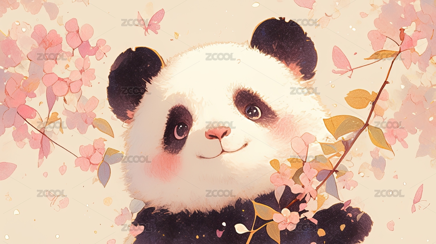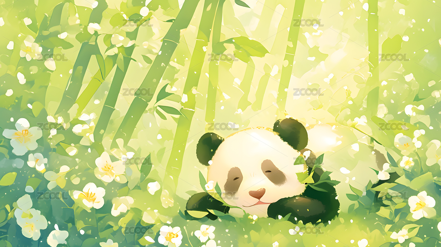 艺术,花朵,自然,插画,温馨,熊猫,卡通,可爱,绿色,动物