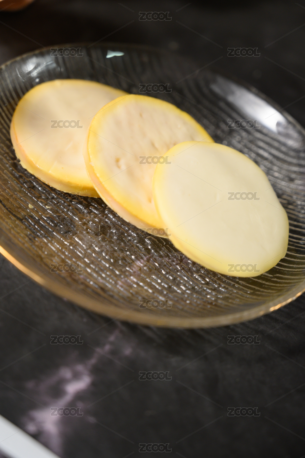 桌面上的盘子里的美味可口的白巧克力橙子片