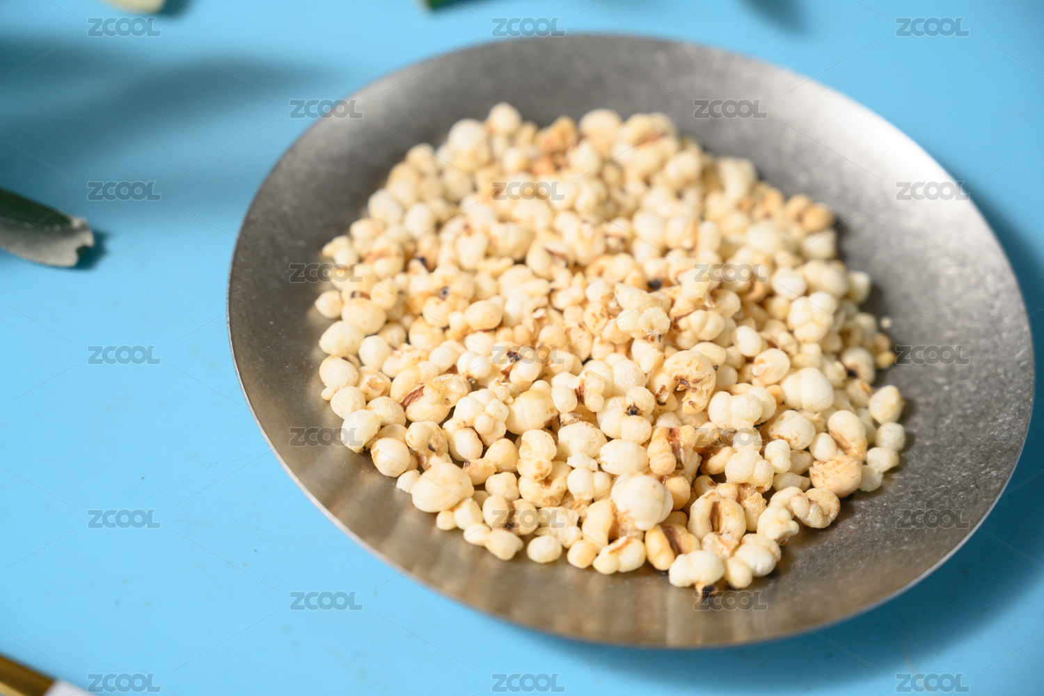 桌面上的盘子里的美味可口的炒薏苡仁