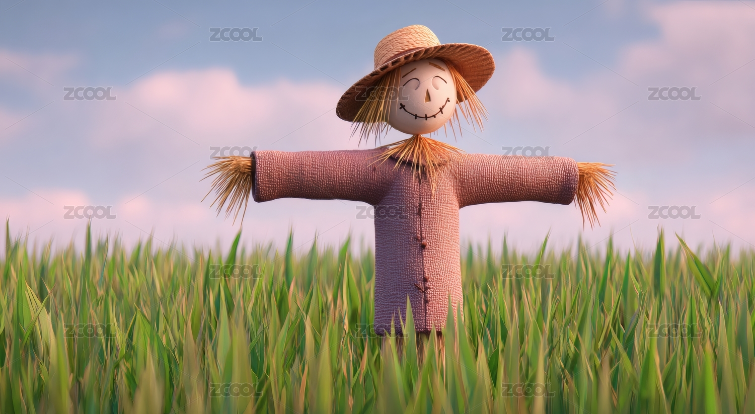 稻草人麦田插画