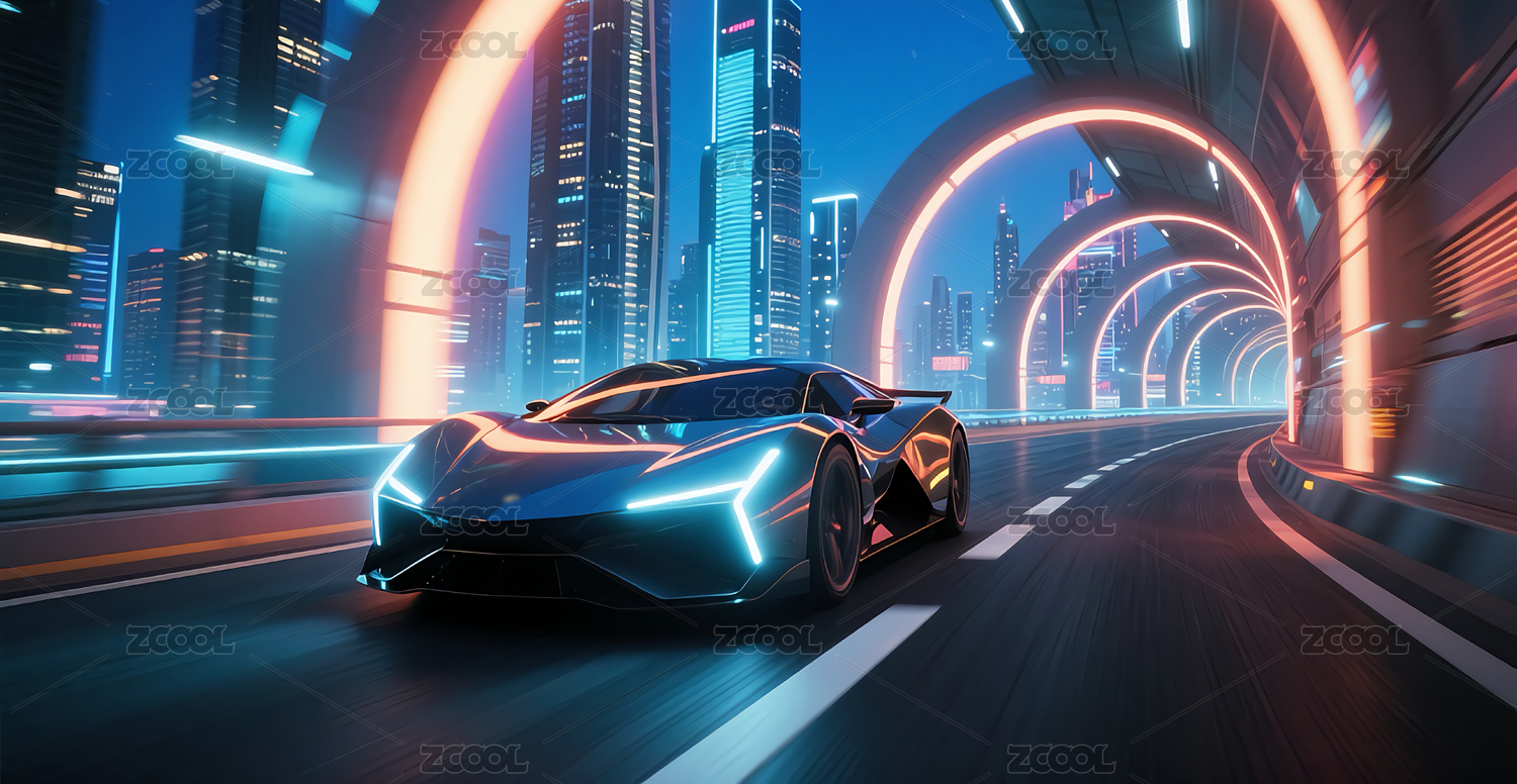 跑车科技感都市行驶场景